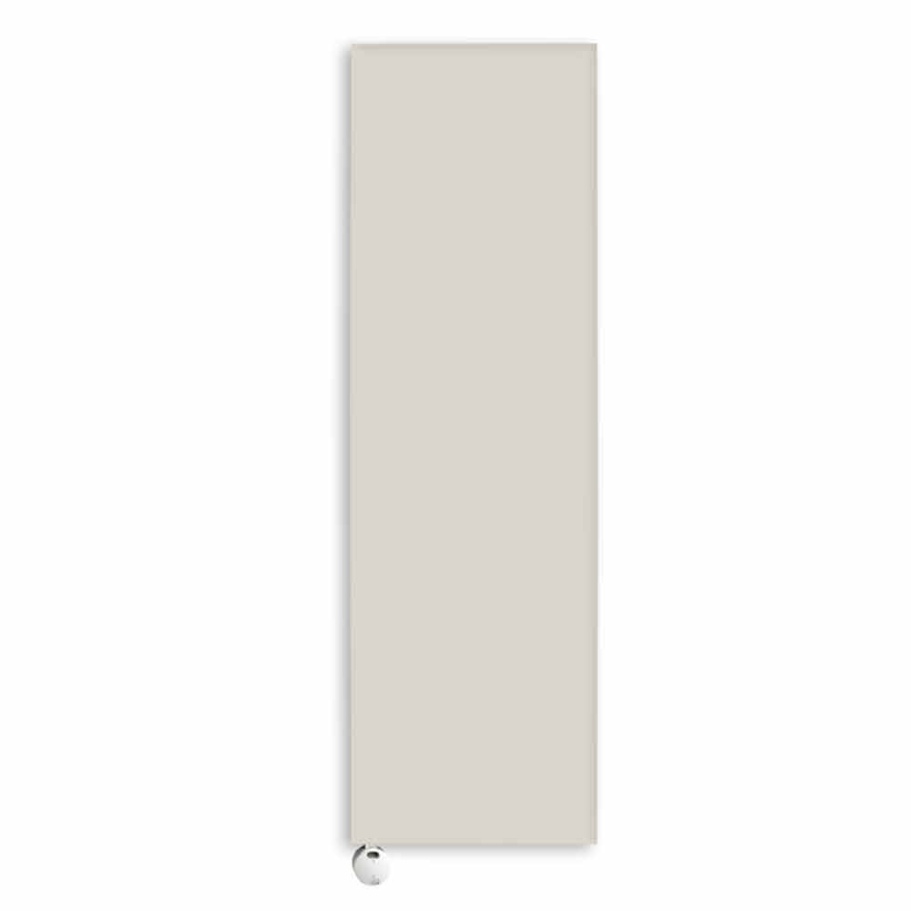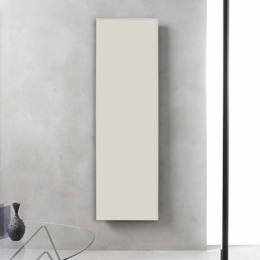 Modern design vertical electric wall-mounted radiator in grayish white steel made in Italy.