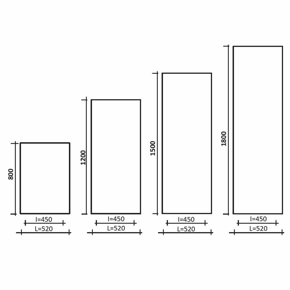 Available in different sizes *:- H 800 x L 520 x Inter. 450 x P 65 mm x Output w (Īt50 °) 450; Yield w (Īt30 °) 230; Yield w (Īt26 °) 195
