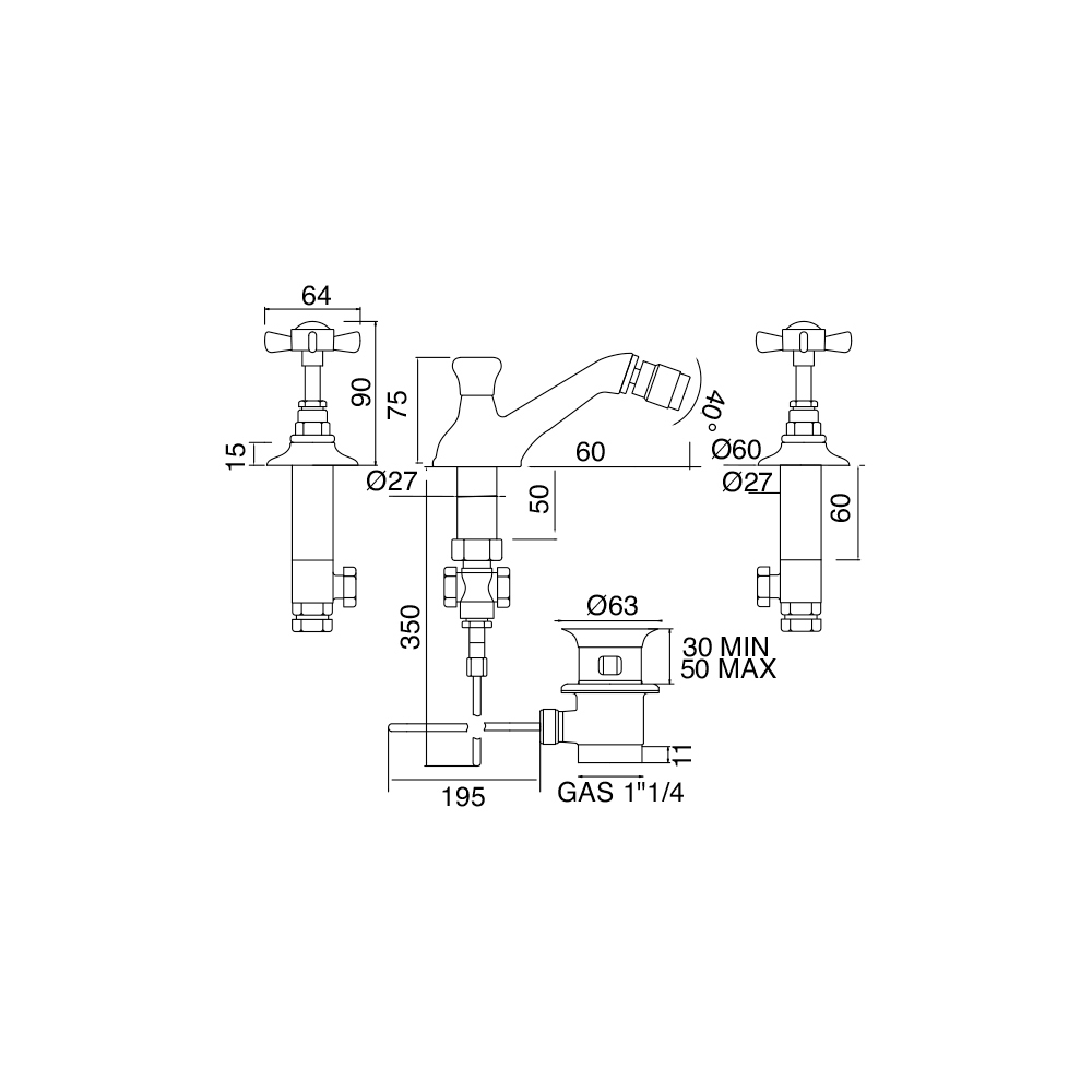 3-hole vintage style bidet tapĀ made in Italy by Katerina brass.