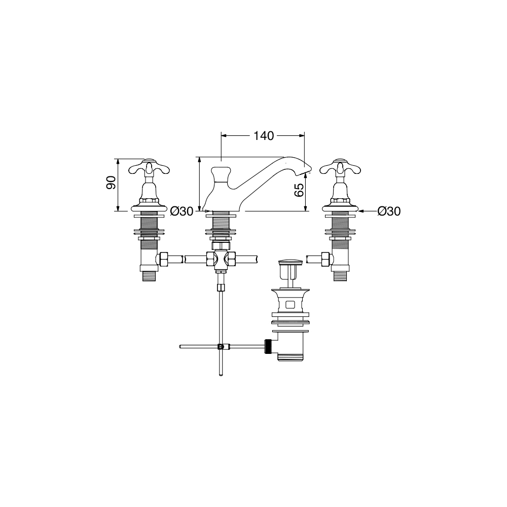 Made in Italy brass 3-hole vintage style washbasin flush, Klarisa.