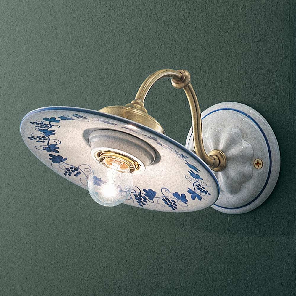 Vintage hand-painted iron and ceramic wall lamp made in Italy by Ferroluce.