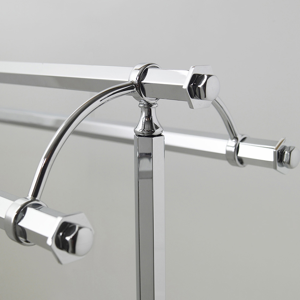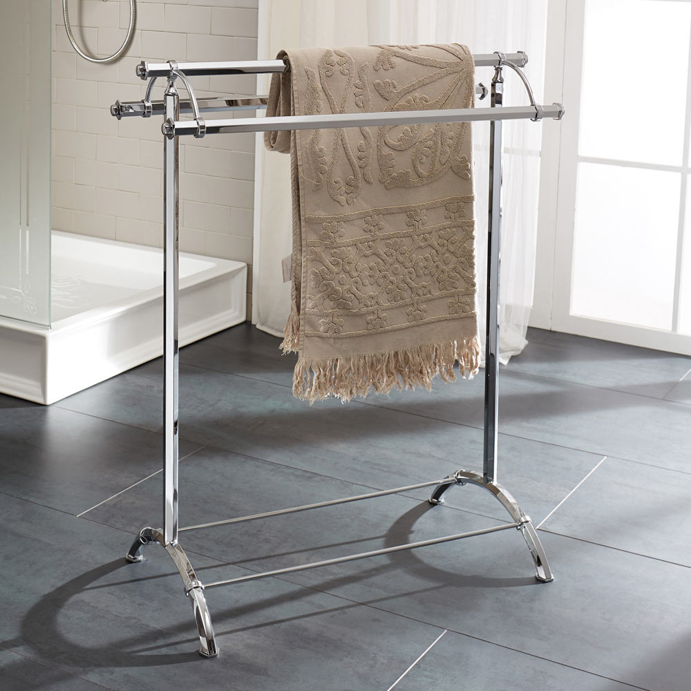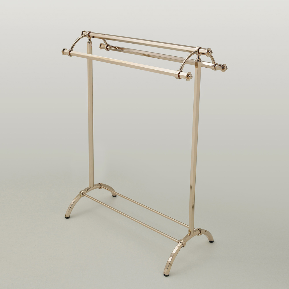 Aristide is a functional and spacious floor-standing towel rail in brass.