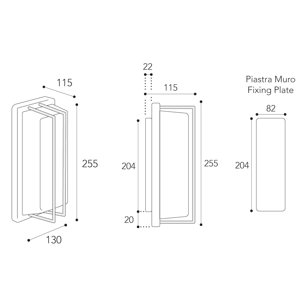 • Wall plate: 20.4 Ɨ 8.2 cm