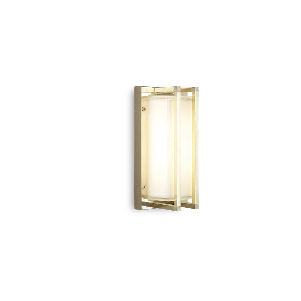 Simple and elegant, this handcrafted wall light is a refined lighting solution, designed to enhance modern walls and contemporary spaces. The die-cast brass structure, combined with a rectangular opal glass diffuser , creates a soft, even light, ideal for welcoming and functional lighting.