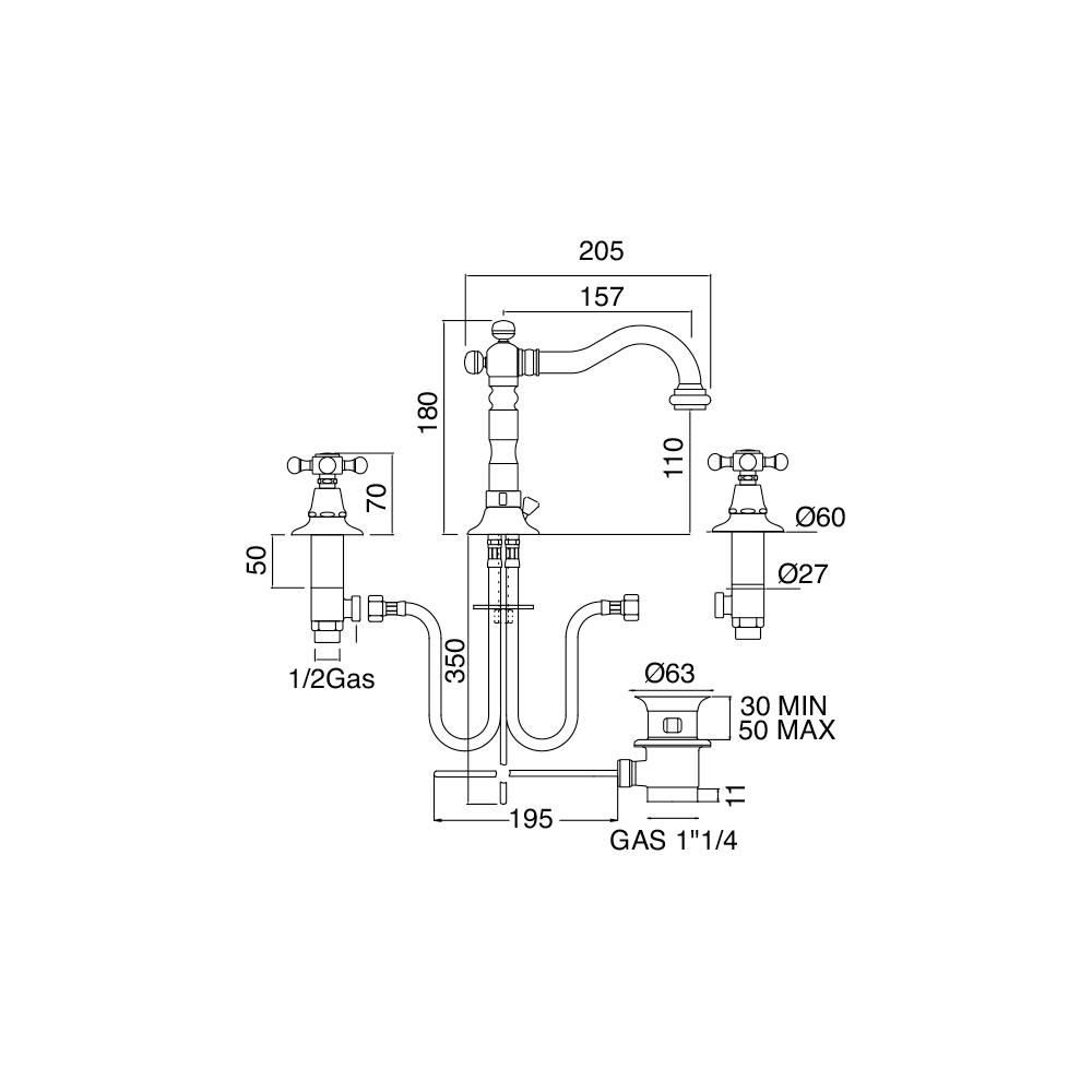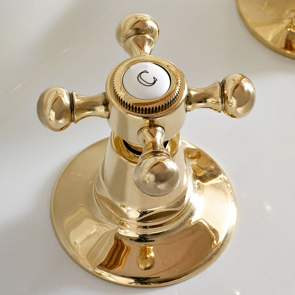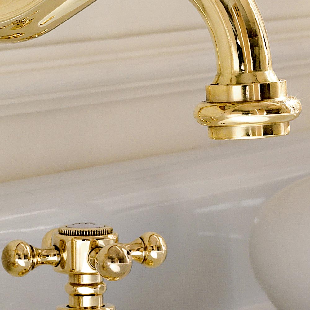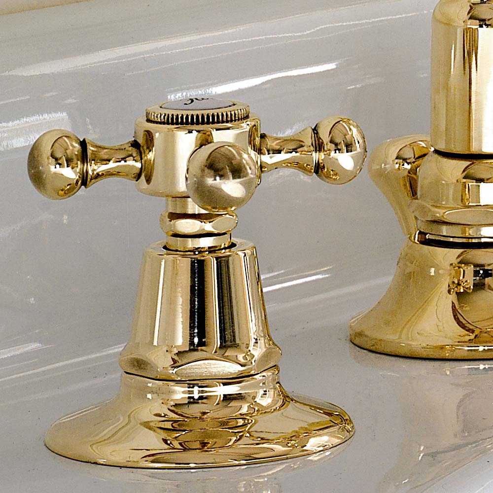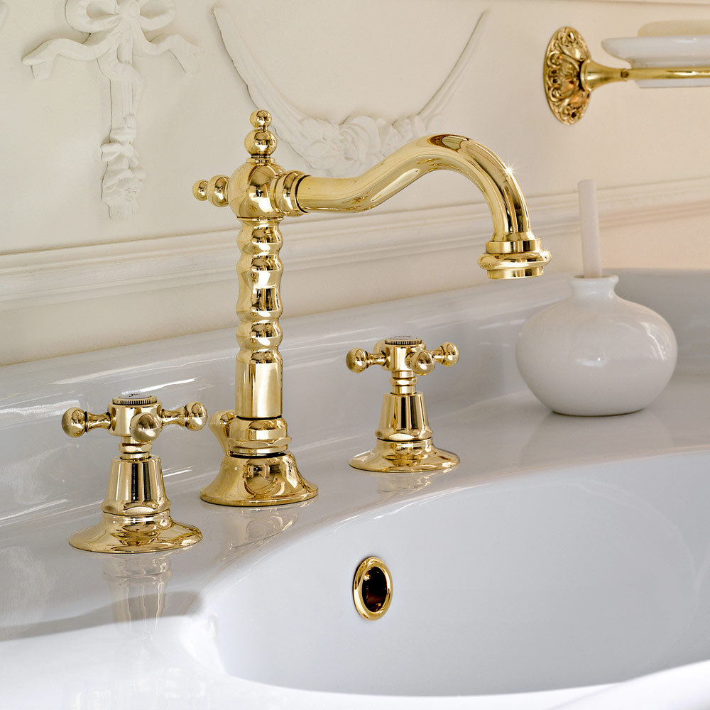 3-hole designer style washbasin tap in brass Ursula, made in Italy.