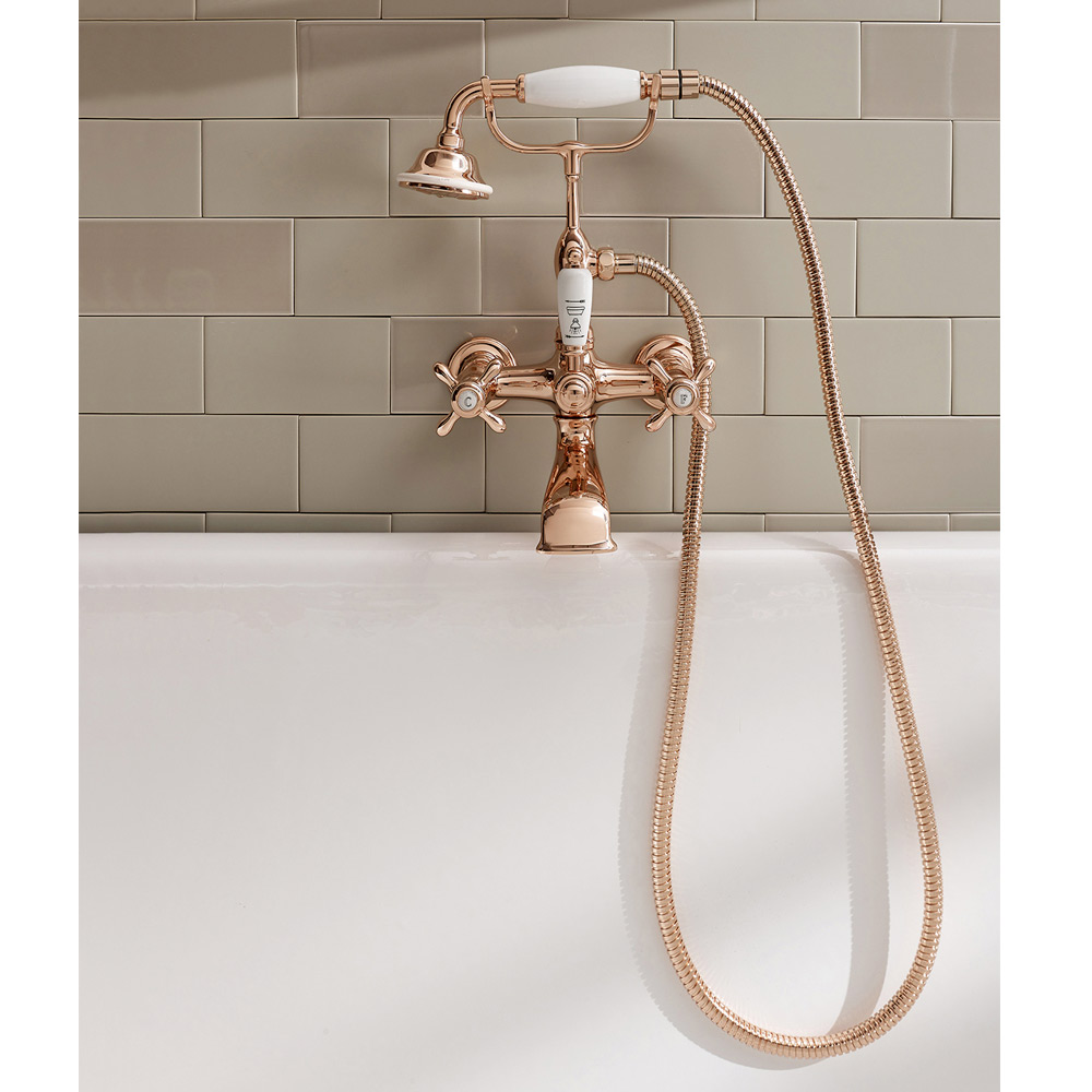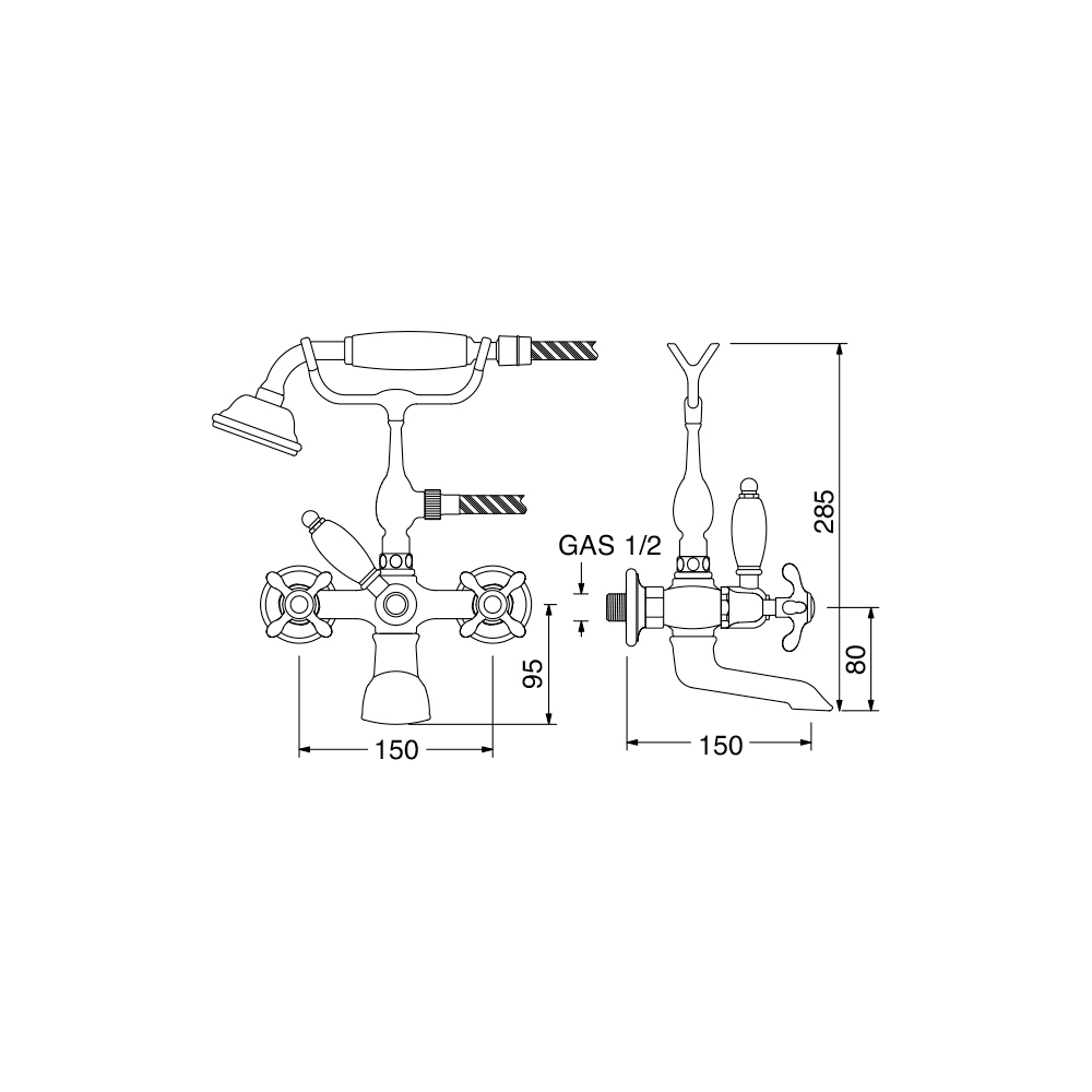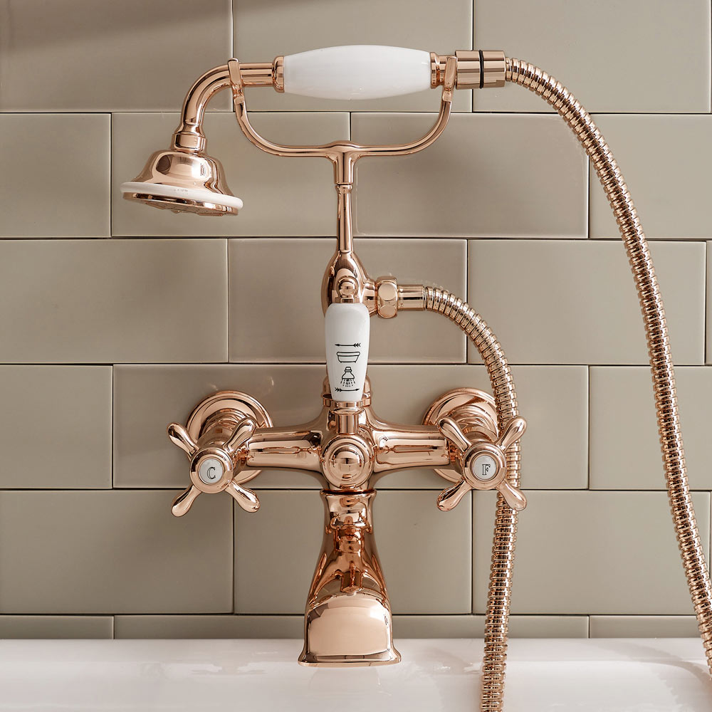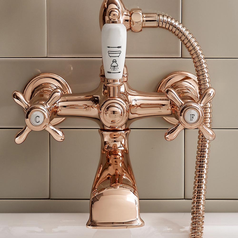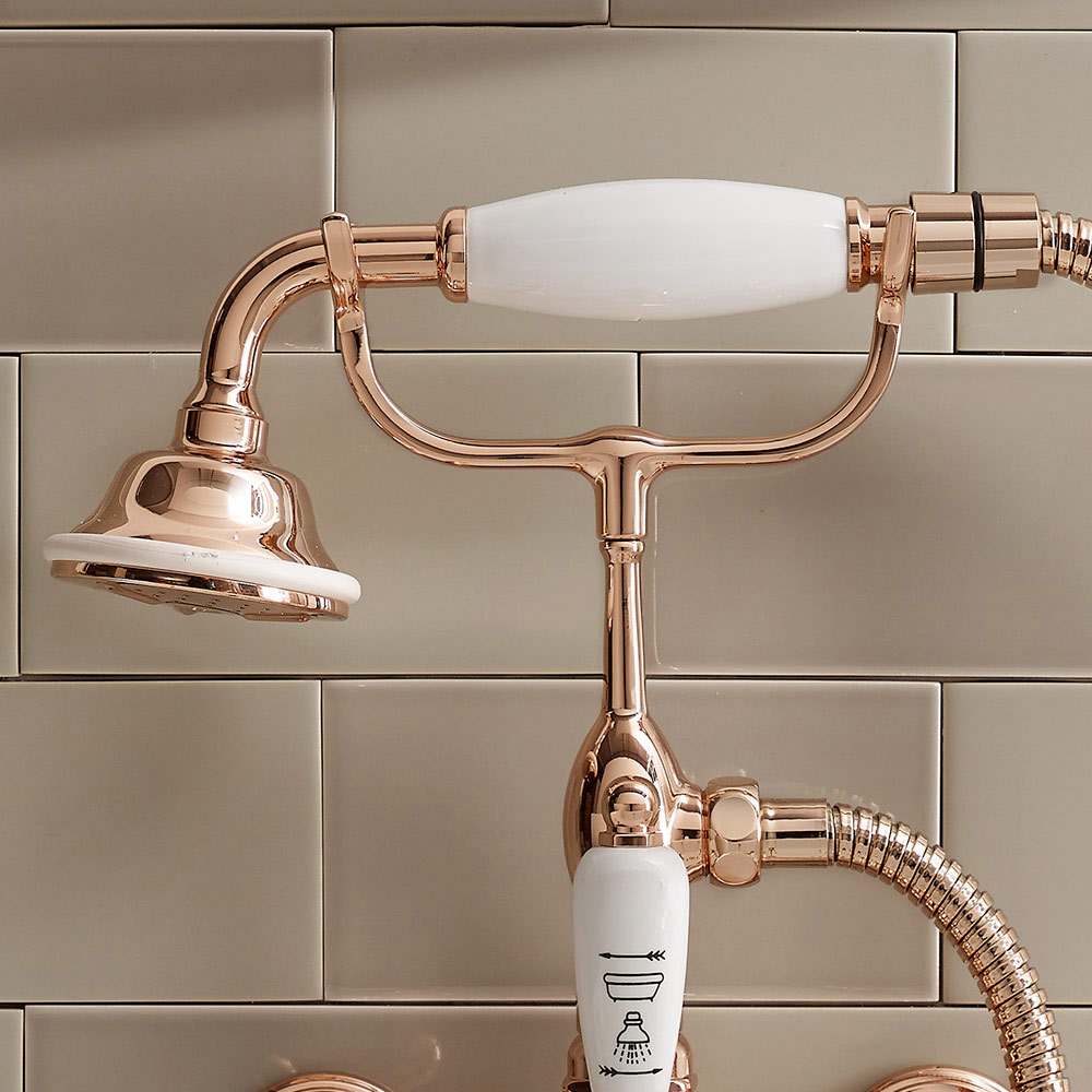 Tub assembly with hand shower made of Klarisa brass, made in Italy.
