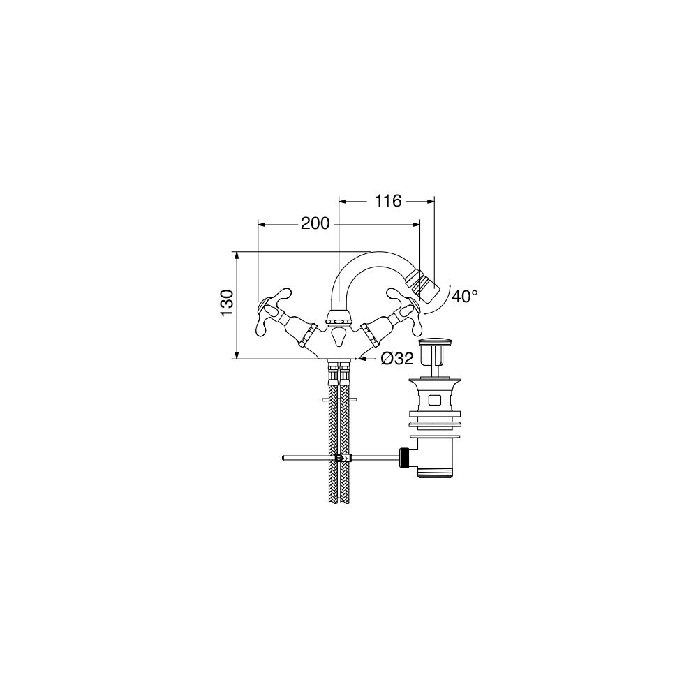 Made in Italy Klarisa brass single-hole bidet mixer, vintage style.