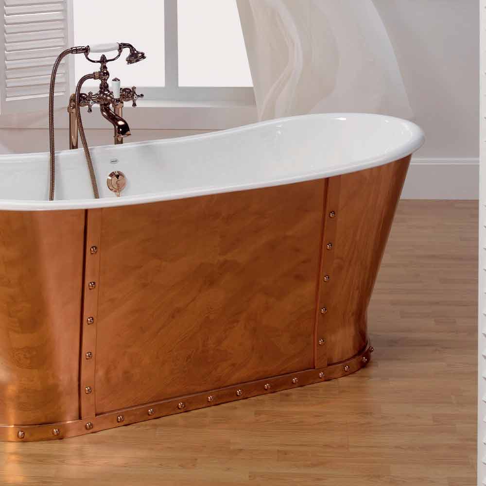 Freestanding bathtub entirely made of cast iron resting on the ground. Internal 2 mm titanium enamelled finish and externally copper plated. Bathtub that represents the top of luxury!