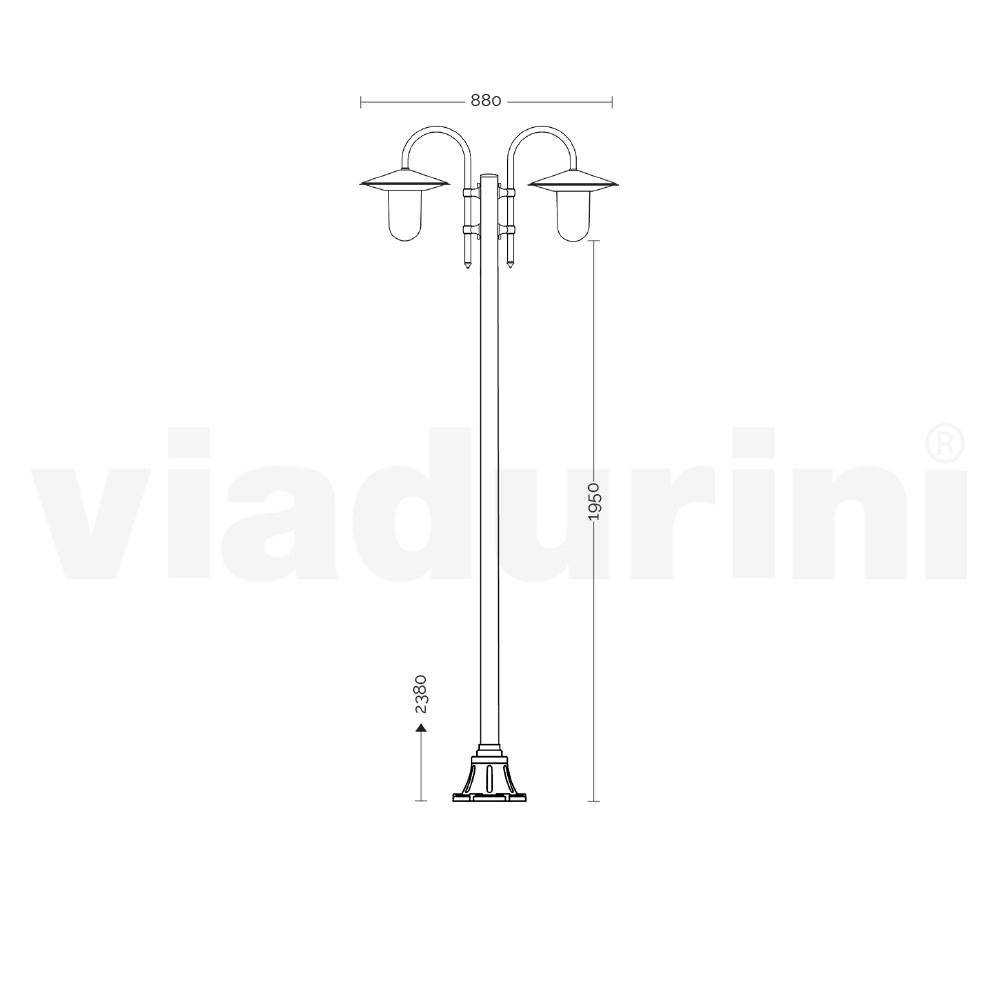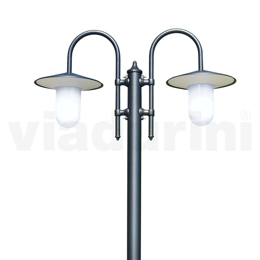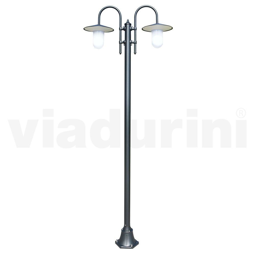 Vintage style 2-light garden lamp with aluminium structure Made in Italy.