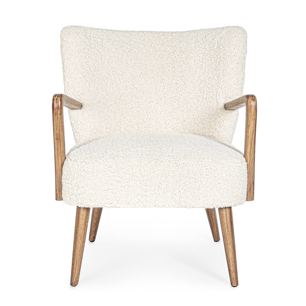 Vintage Rubberwood Armchair and Wool Effect Seat and Armrests - Patrizia