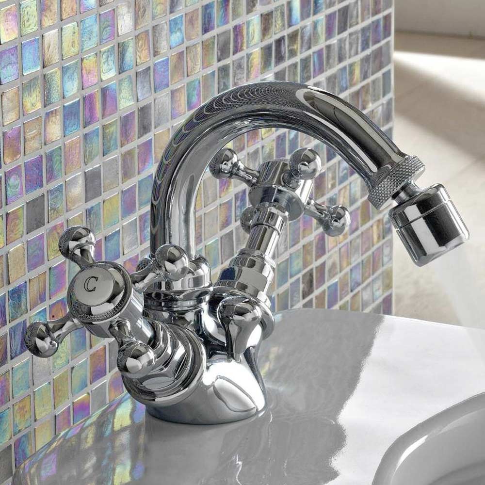 Mono-hole bidet mixer of vintage design in brass made in Italy, Elisea.