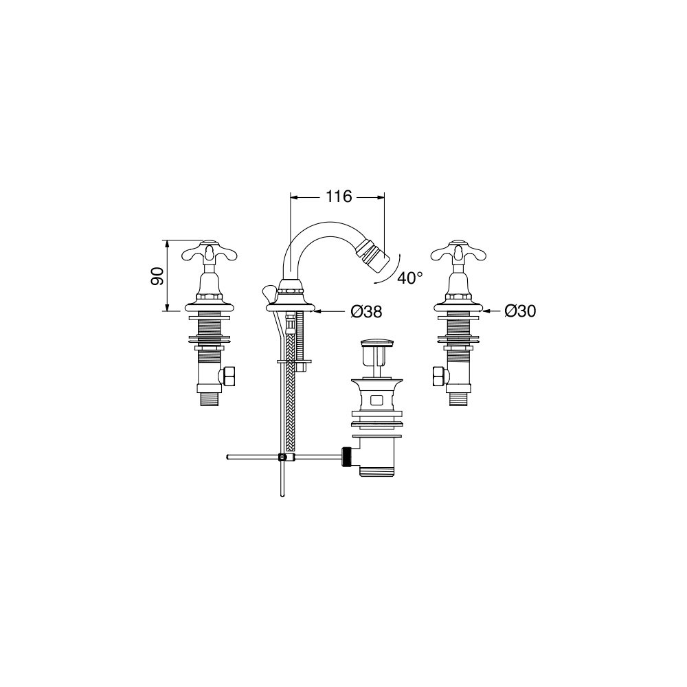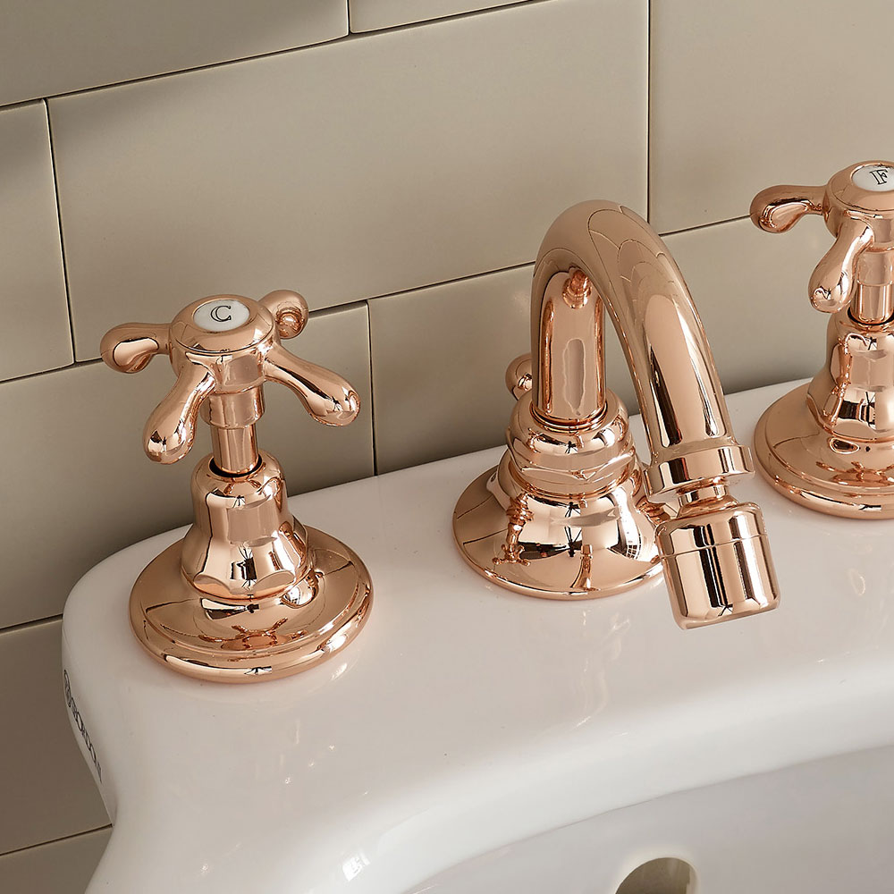 Brass 3-hole vintage style bidet tap made in Italy, Klarisa.