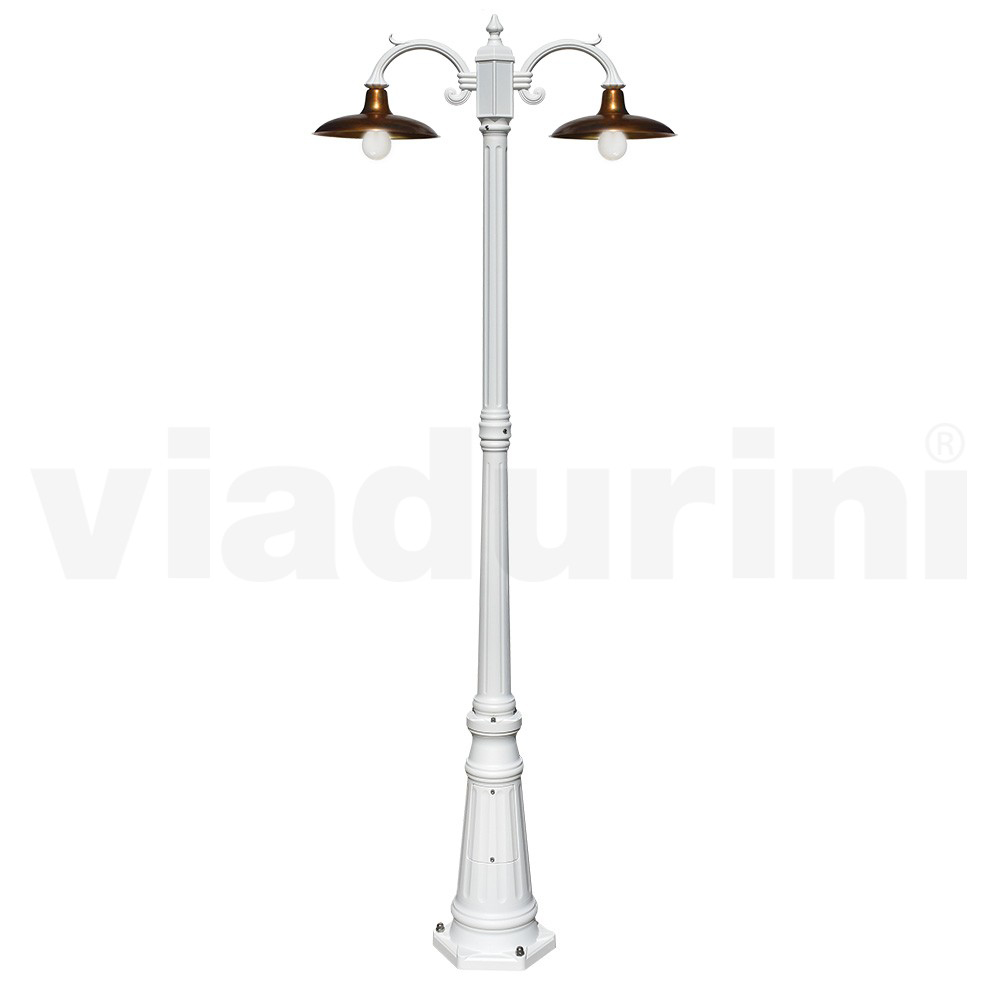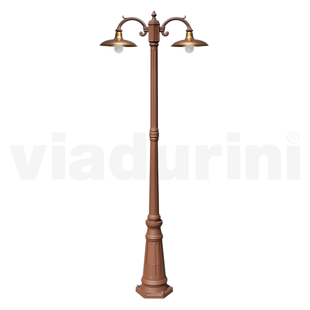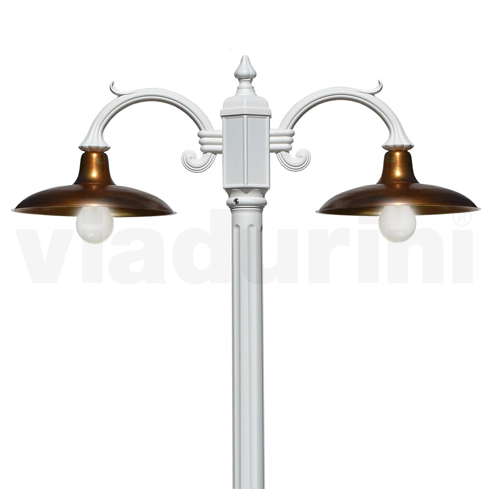 2-light vintage style aluminium street lamp with brass diffuser Made in Italy.