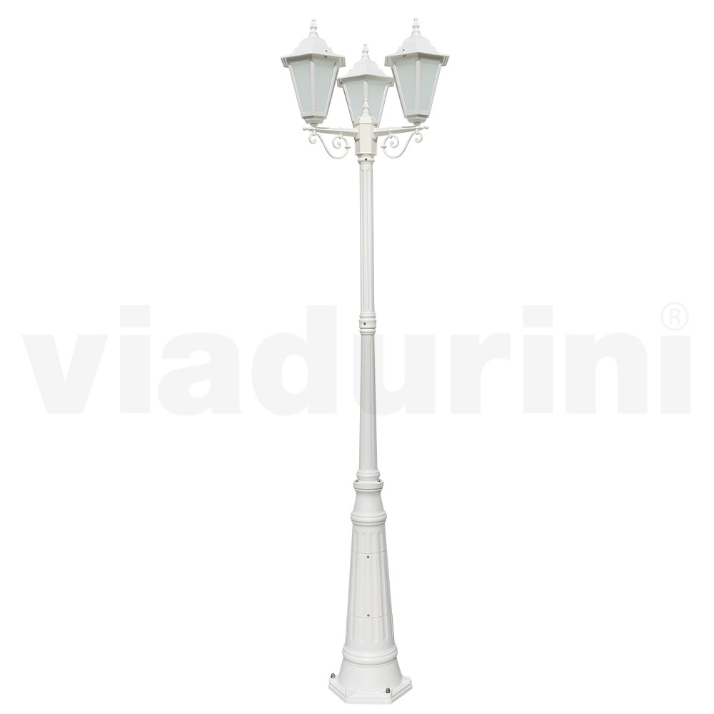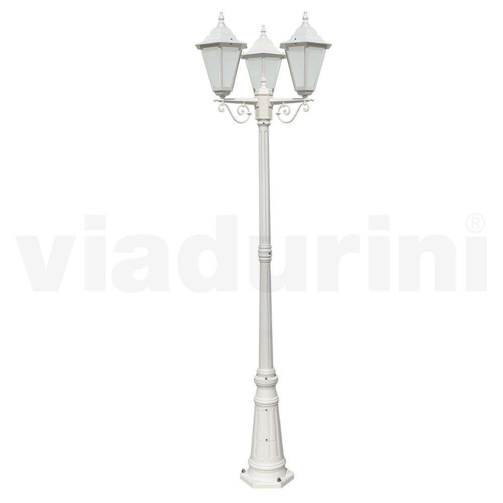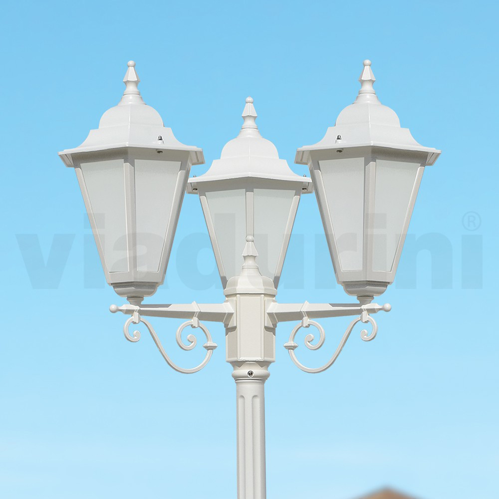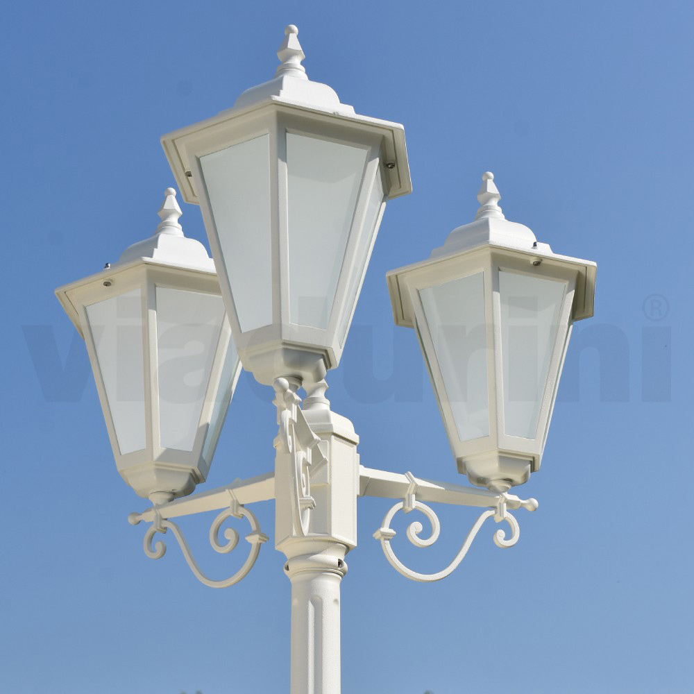 3-light aluminium street lamp with glass diffuser Made in Italy, vintage style.