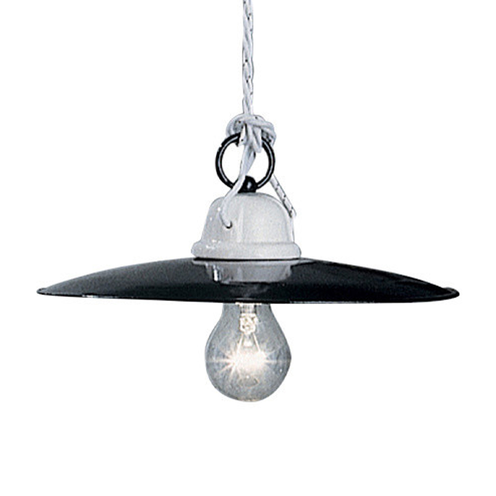 Suspended two-tone lamp in ceramic and metal of design made in Italy by Ferroluce.