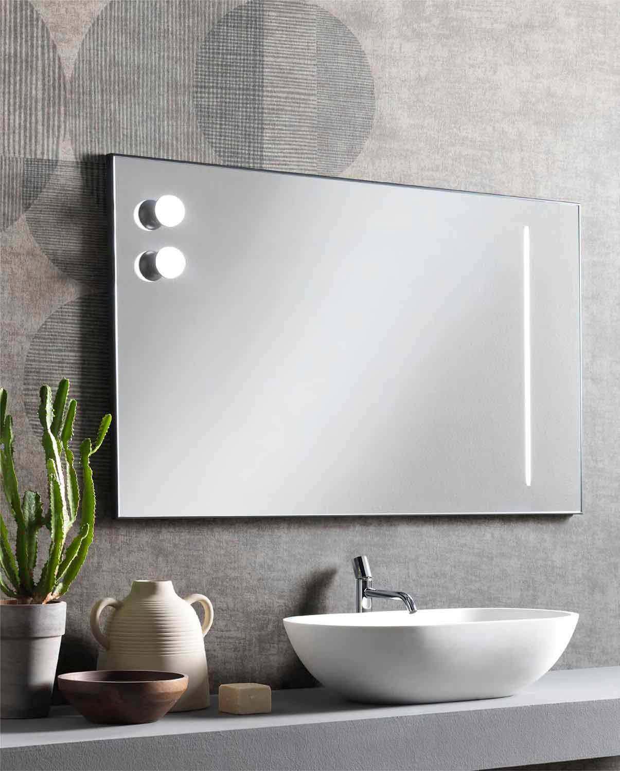 Wall mirror with two lamps and aluminium frame of Made in Italy design.