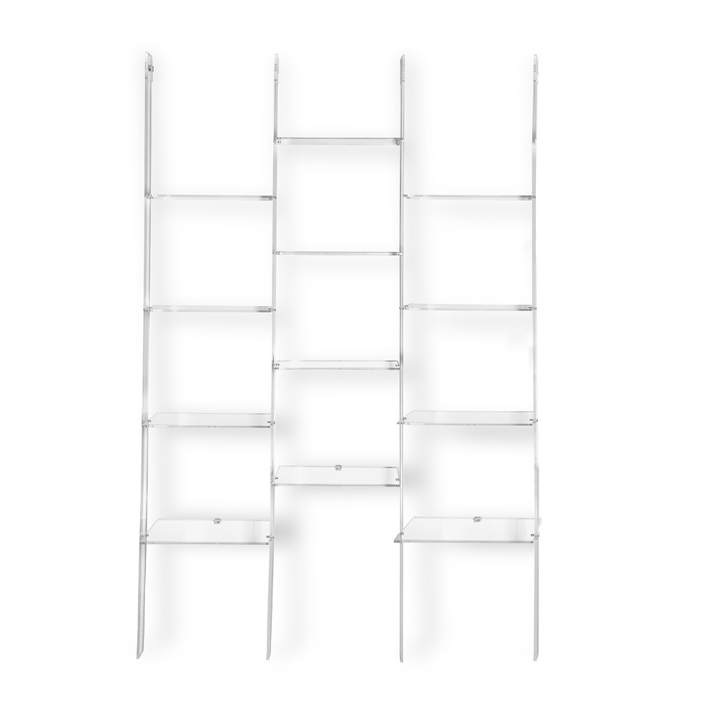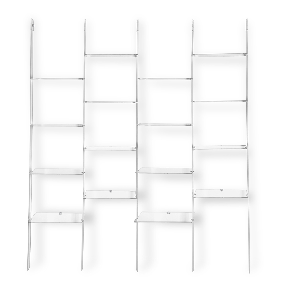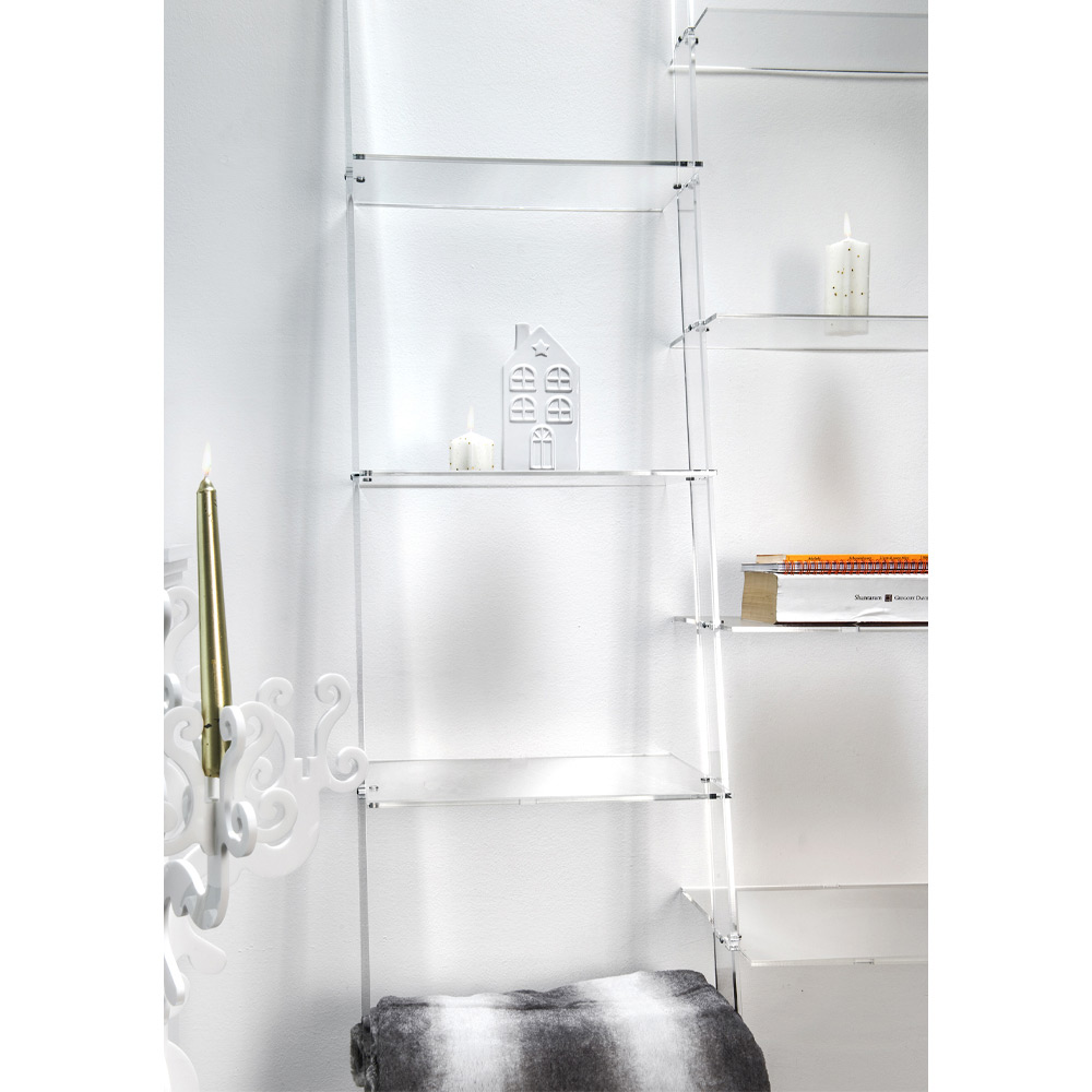 Ladder-shaped wall bookcase with up to 4 elements in transparent plexiglass made in Italy.