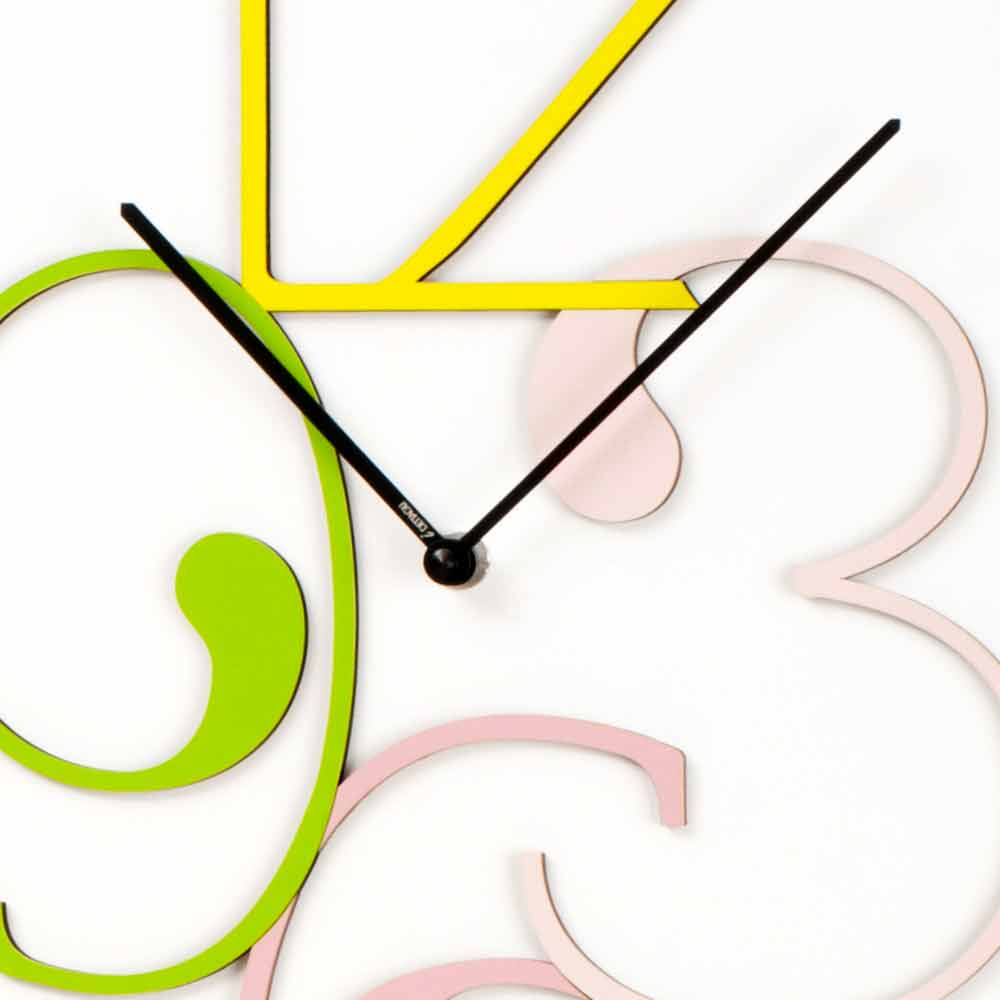 Wall clock in matt white wood with colored numbers, two versions of rectangular and modern design made in Italy.