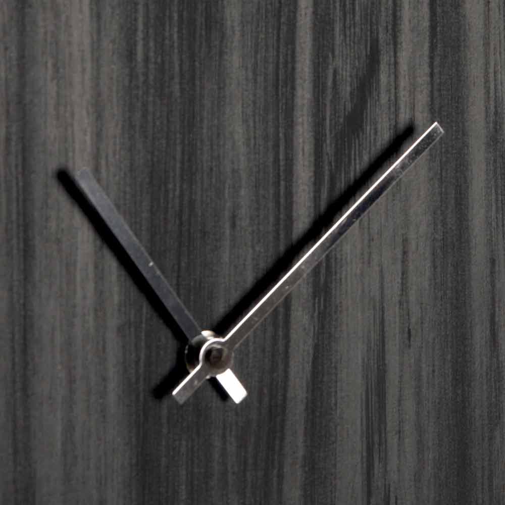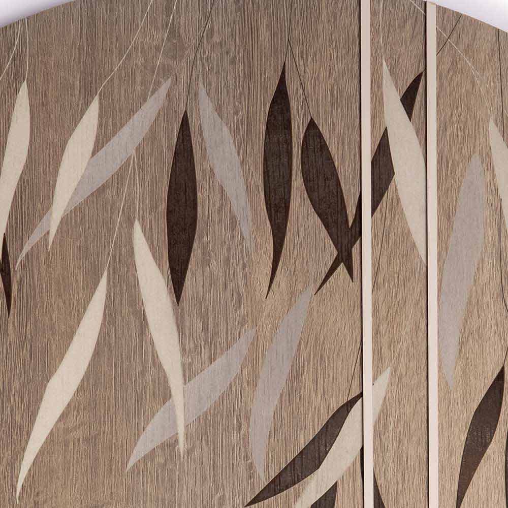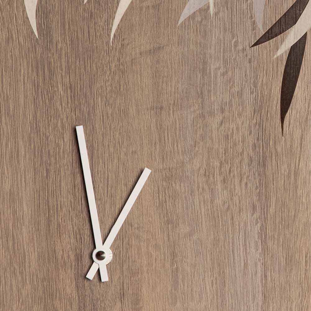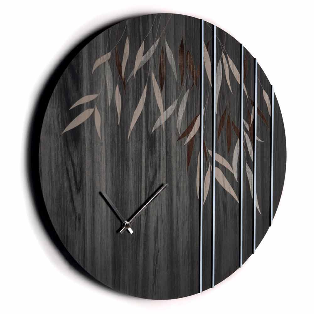 Round wooden wall clock with laser engraving and lacquered wood decorations, made in Italy design.