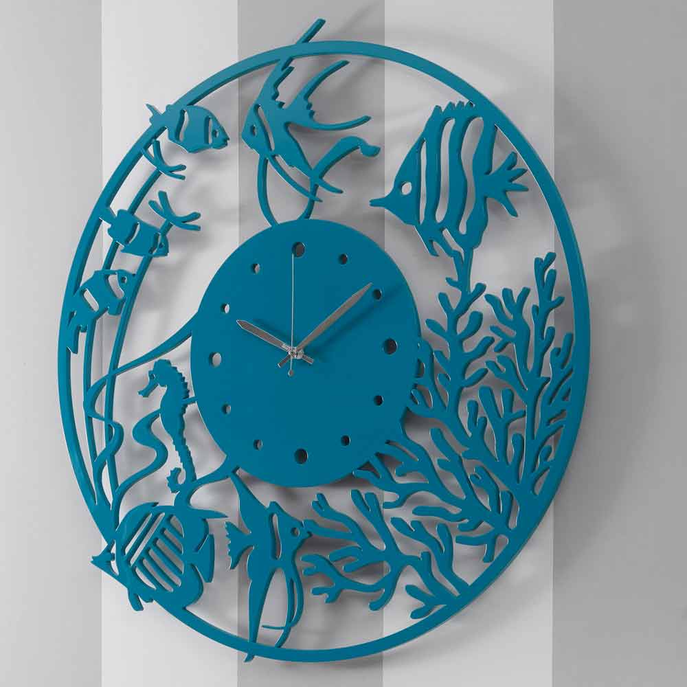 Large wall clock in white, black, petrol or brown wood, modern and particular round design made in Italy.