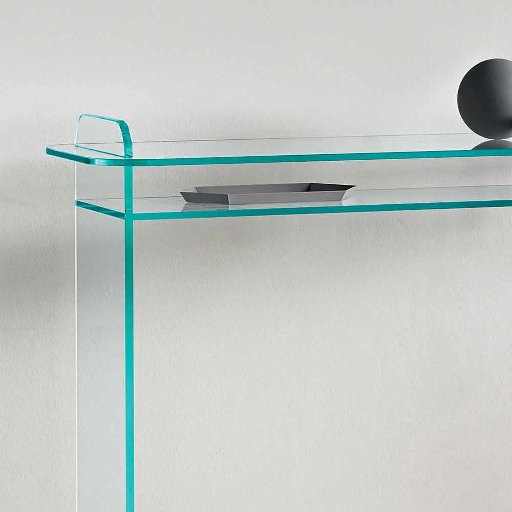 Produced entirely in 12 mm thick extra-clear glass , thanks to its practical and minimal shapes it is ideal for giving style and functionality to the environment.