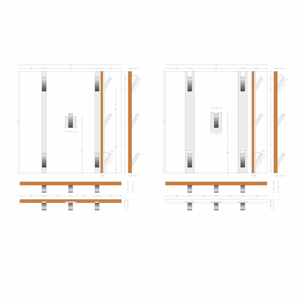 Wall panel in teak wood with corian inserts and hangers, high quality made in Italy.