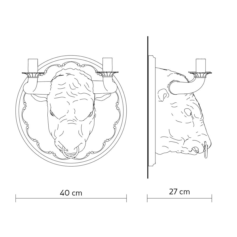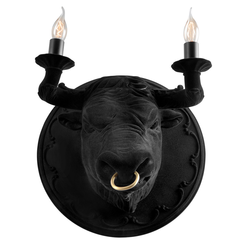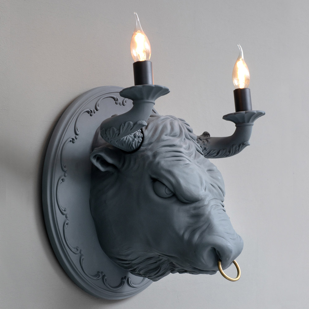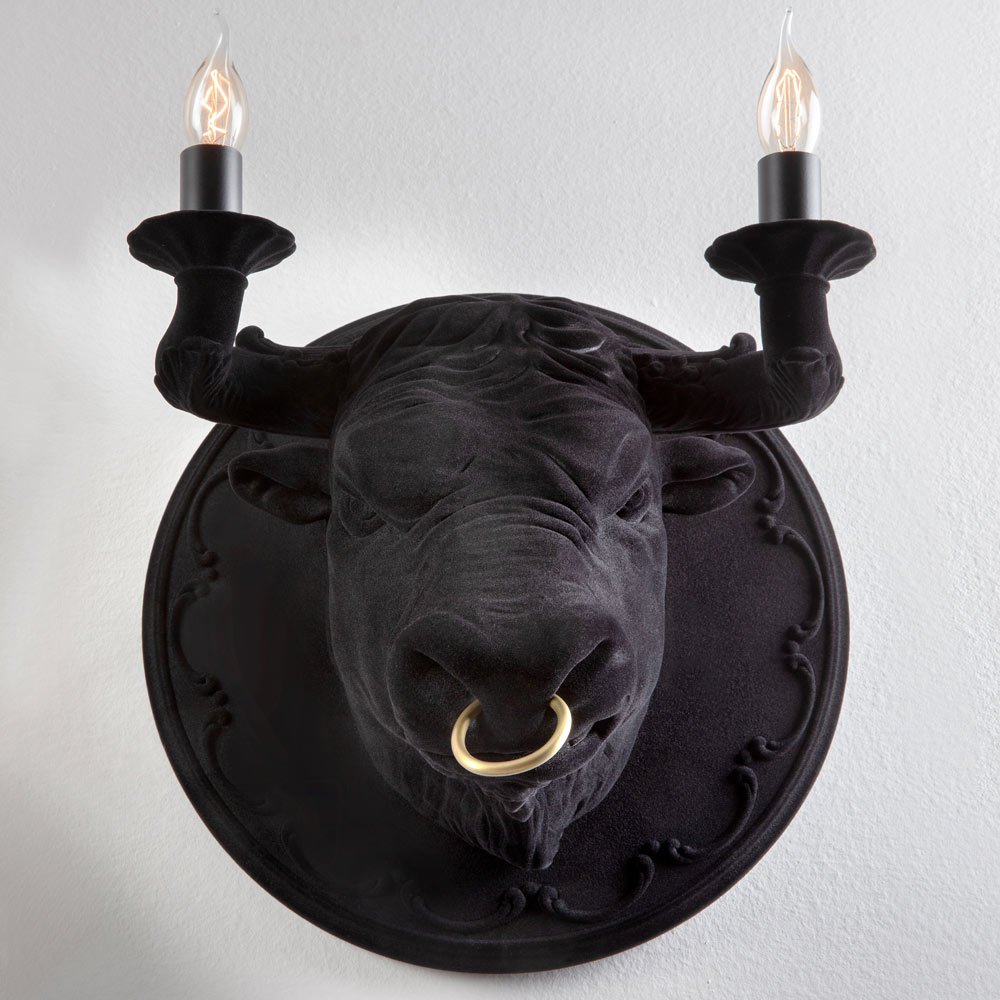 This original and unique wall light has a modern and cute design in the shape of a bull 's head complete with a nose ring and horns for lights, for a light and sophisticated spirit.