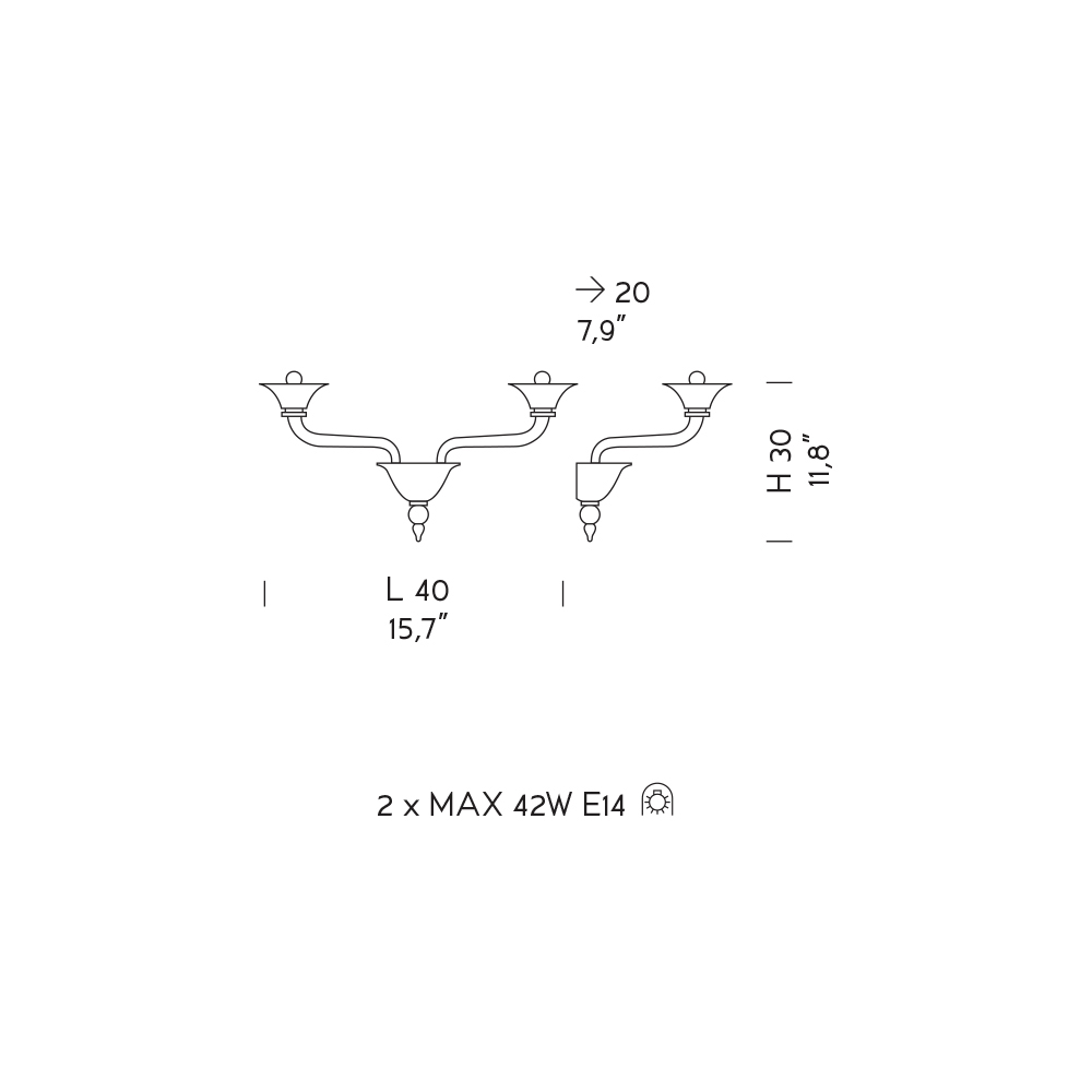 Bulbs (not included) : 2 x MAX 42W E14
