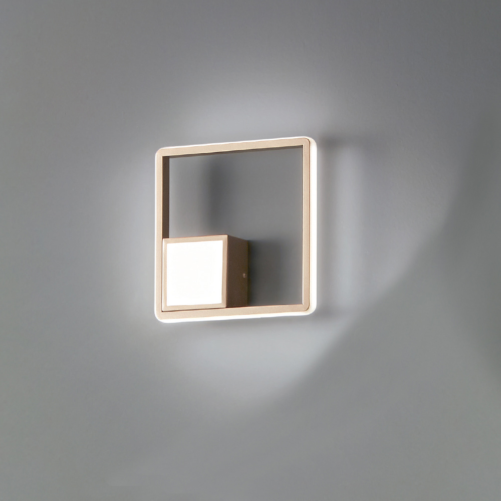 squared lines , conceived and designed to illuminate and furnish domestic spaces such as entrances, corridors, bedrooms, living areas or kitchens in an exclusive and elegant way. The refined golden finish underlines its
