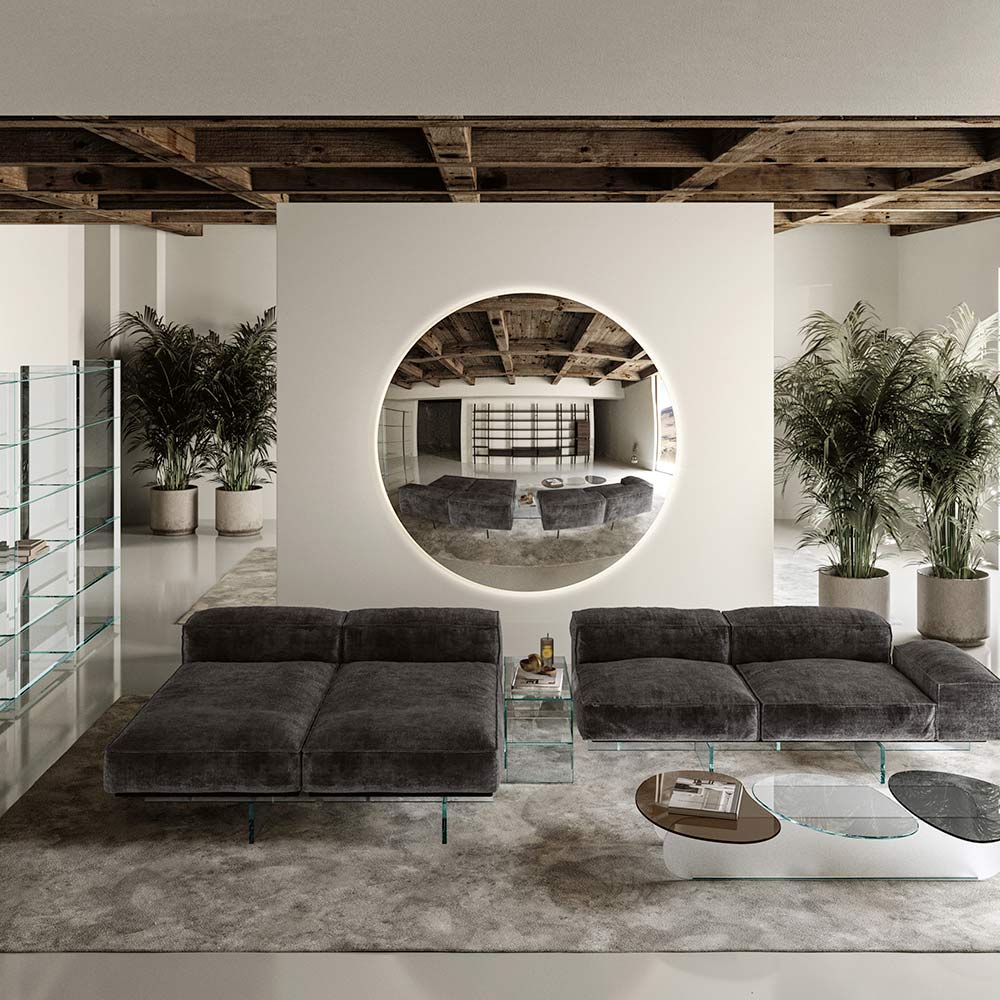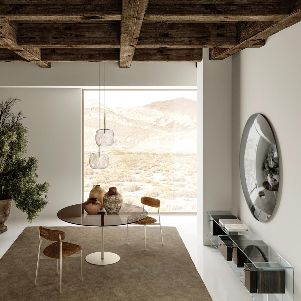 This circular mirror is the emblem of sobriety and minimalism , a furnishing accessory that adapts perfectly to any modern or traditional environment. Its reflective, flawless surface not only amplifies light and space, but also serves as an elegant focal point in any room.