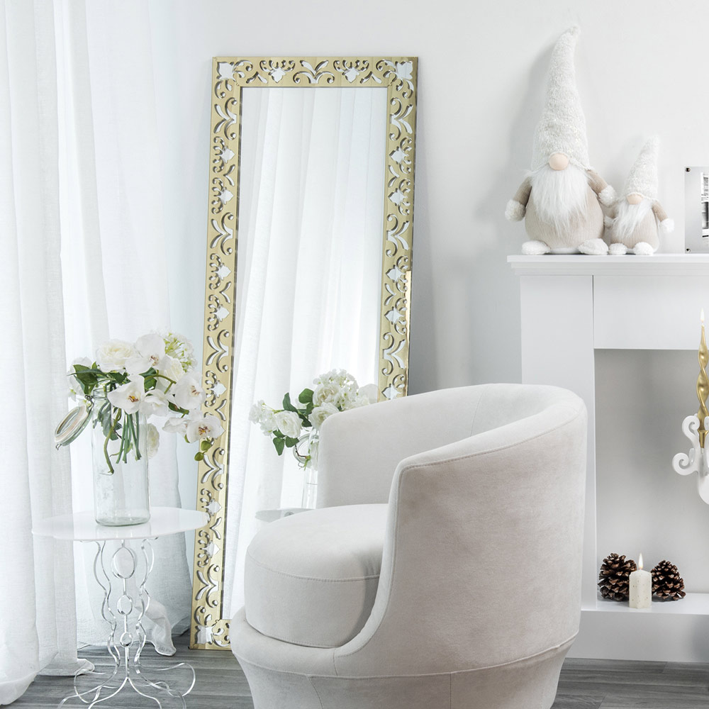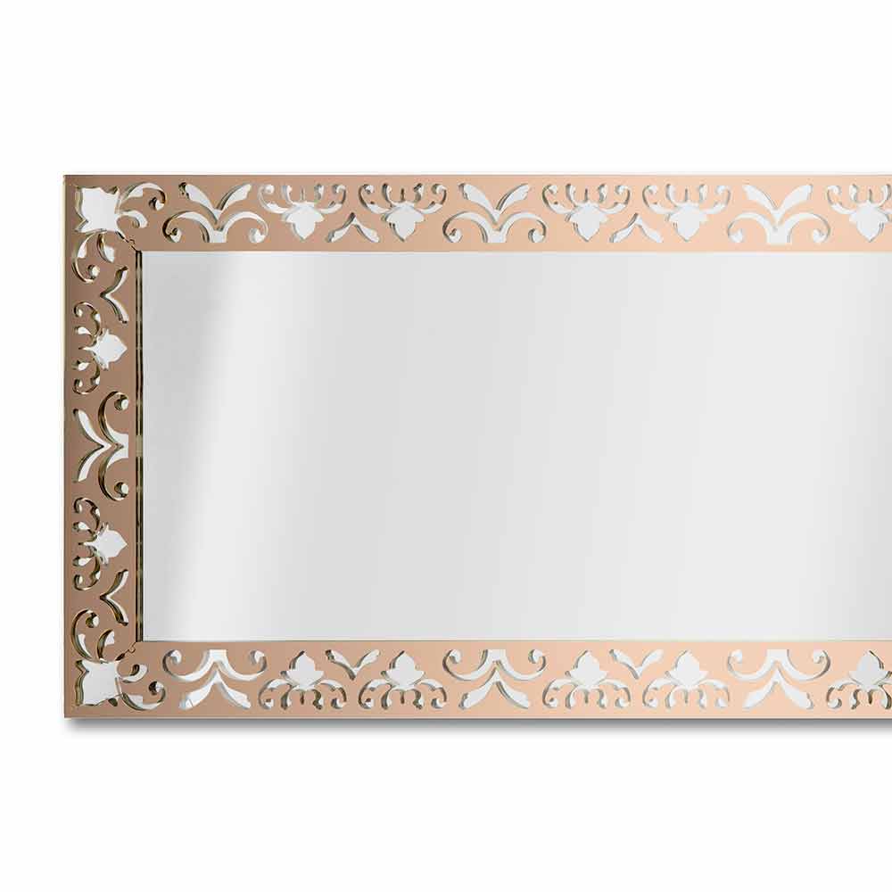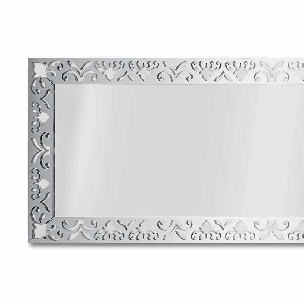 This elegant wall mirror with frame made of 100% virgin polymer plexiglass features floral-inspired decorations that are laser- cut with skill, for a precious and discreet design.