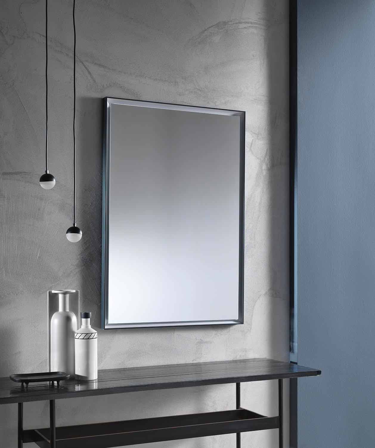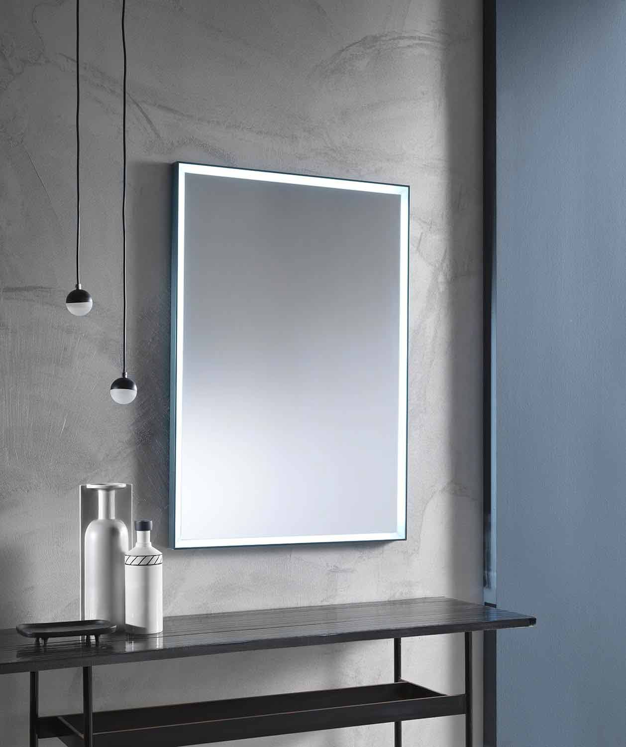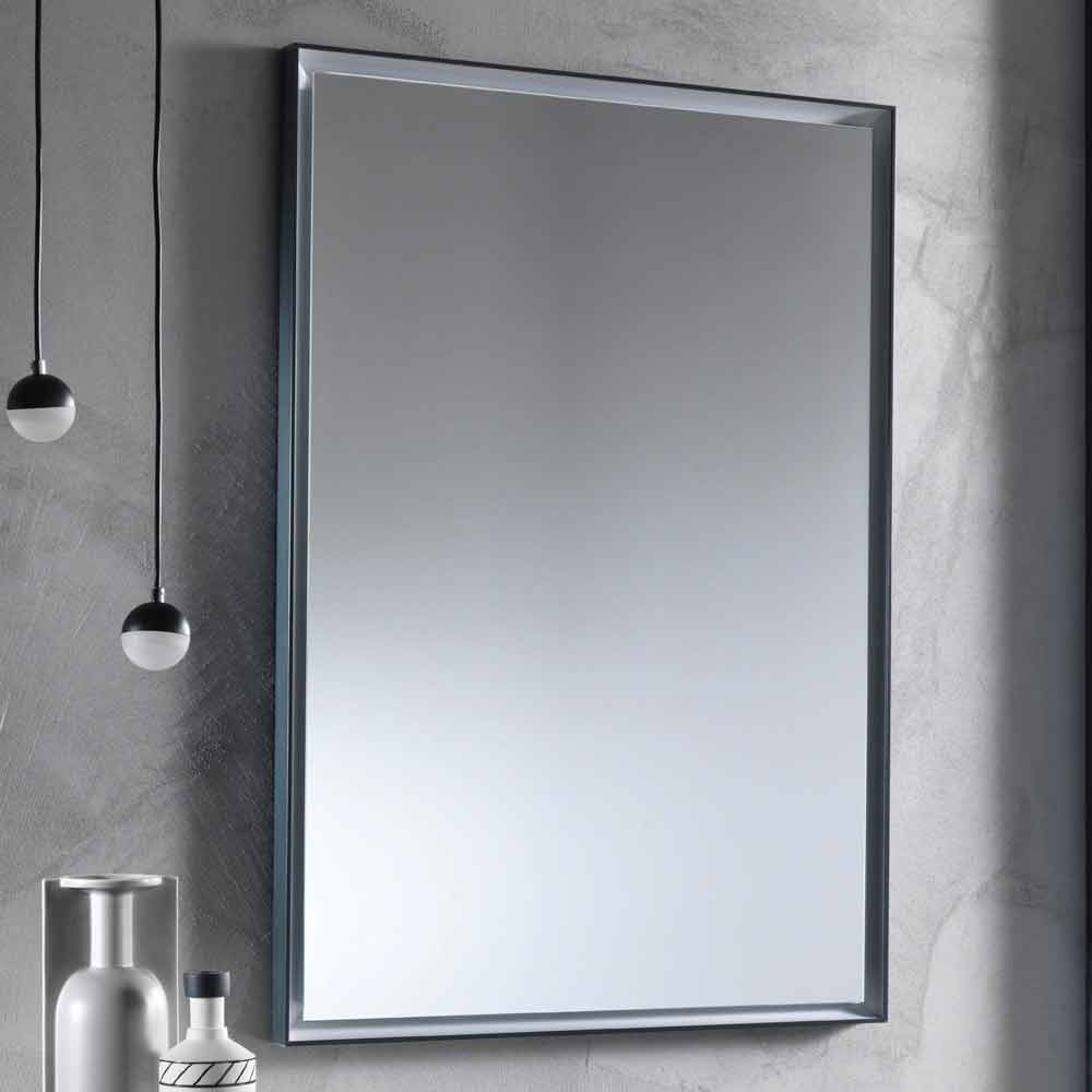 Modern rectangular design wall mirror with aluminium frame and LED light Made in Italy.