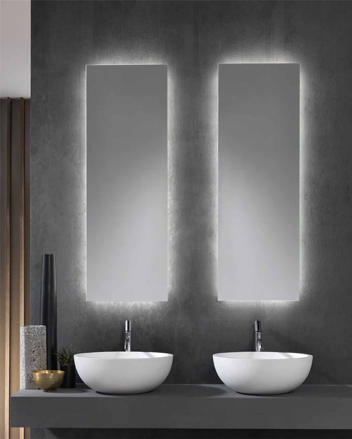 Modern rectangular backlit wall mirror with LED light Made in Italy.