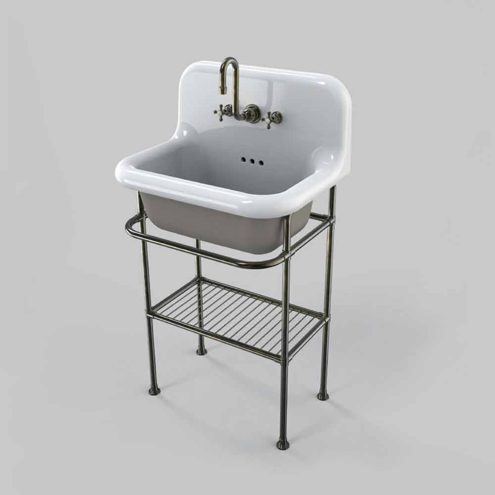 Tom is a beautiful wall-mounted washbasin, with a rectangular shape, with a vintage and original design enriched by a beautiful metal structure with grill.