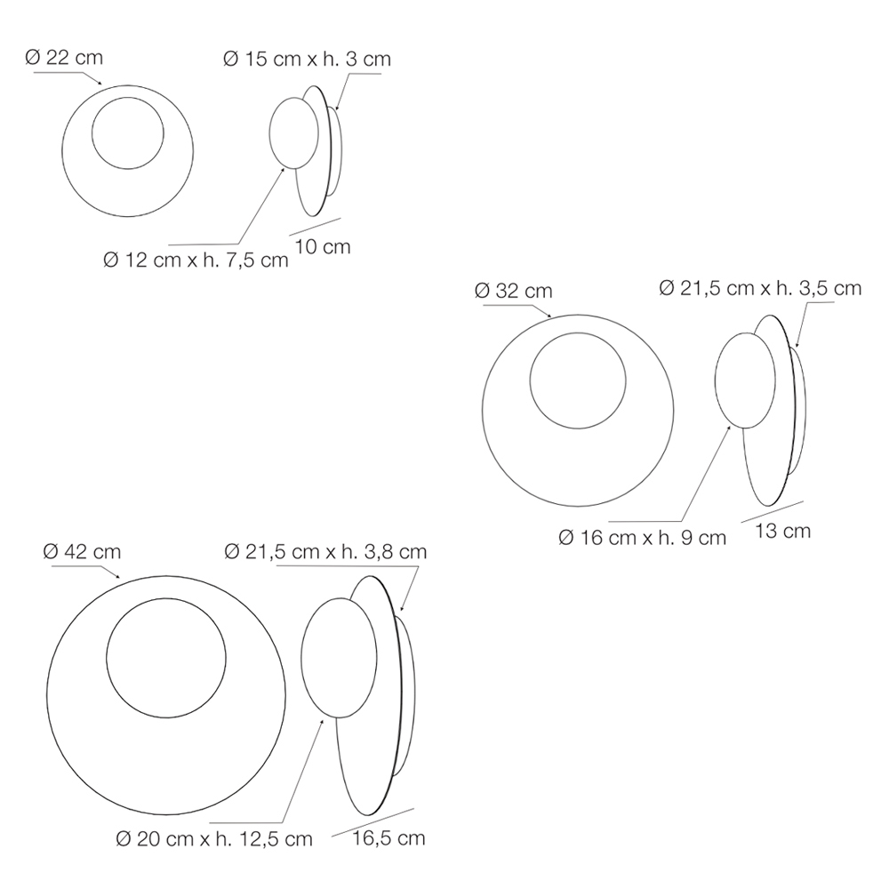 • ceiling rose diameter 22 cm - lamp diameter 12 x height 7.5 cm - structure diameter 15 x height 3 cm - total depth 10 cm - DIMMABLE