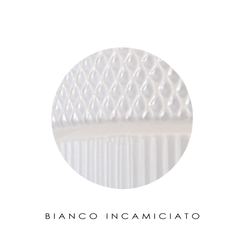 Rigata processing: processing technique that involves the use of a mould with small queues and rhombus engraving into which the glass is blown to create a wonderful visual and tactile effect.