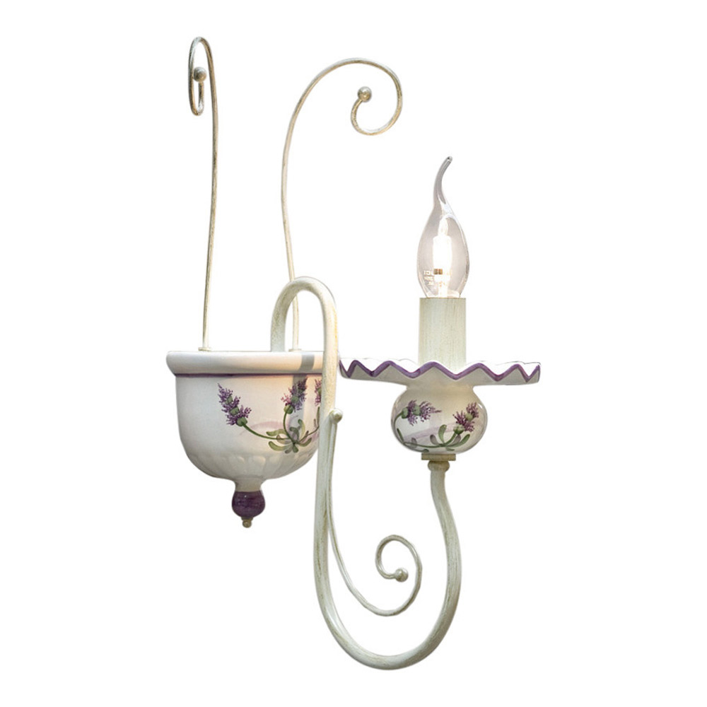 Wall lamp in brass and hand-painted ceramic, made in Italy by Ferroluce.