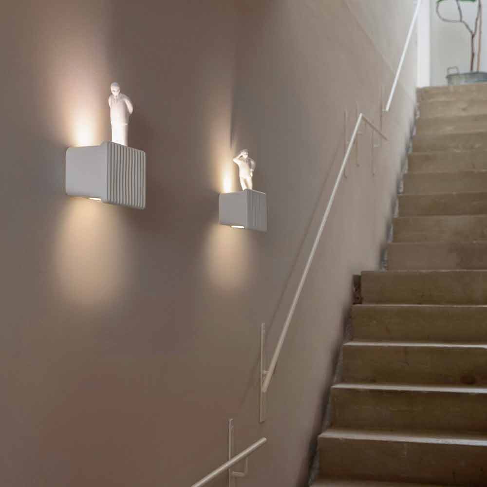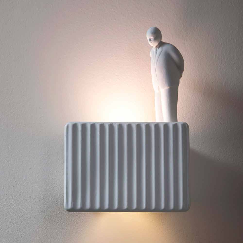 This original and singular wall lamp represents the movement that in recent years has enjoyed a successful media phenomenon and which sees the umarell , or the typical elderly pensioner looking at construction sites or public works, as the protagonist. It is a concept that ironically came to life in Italy and then spread to the rest of the world in order to stimulate and improve production for all office workers and computer workers.