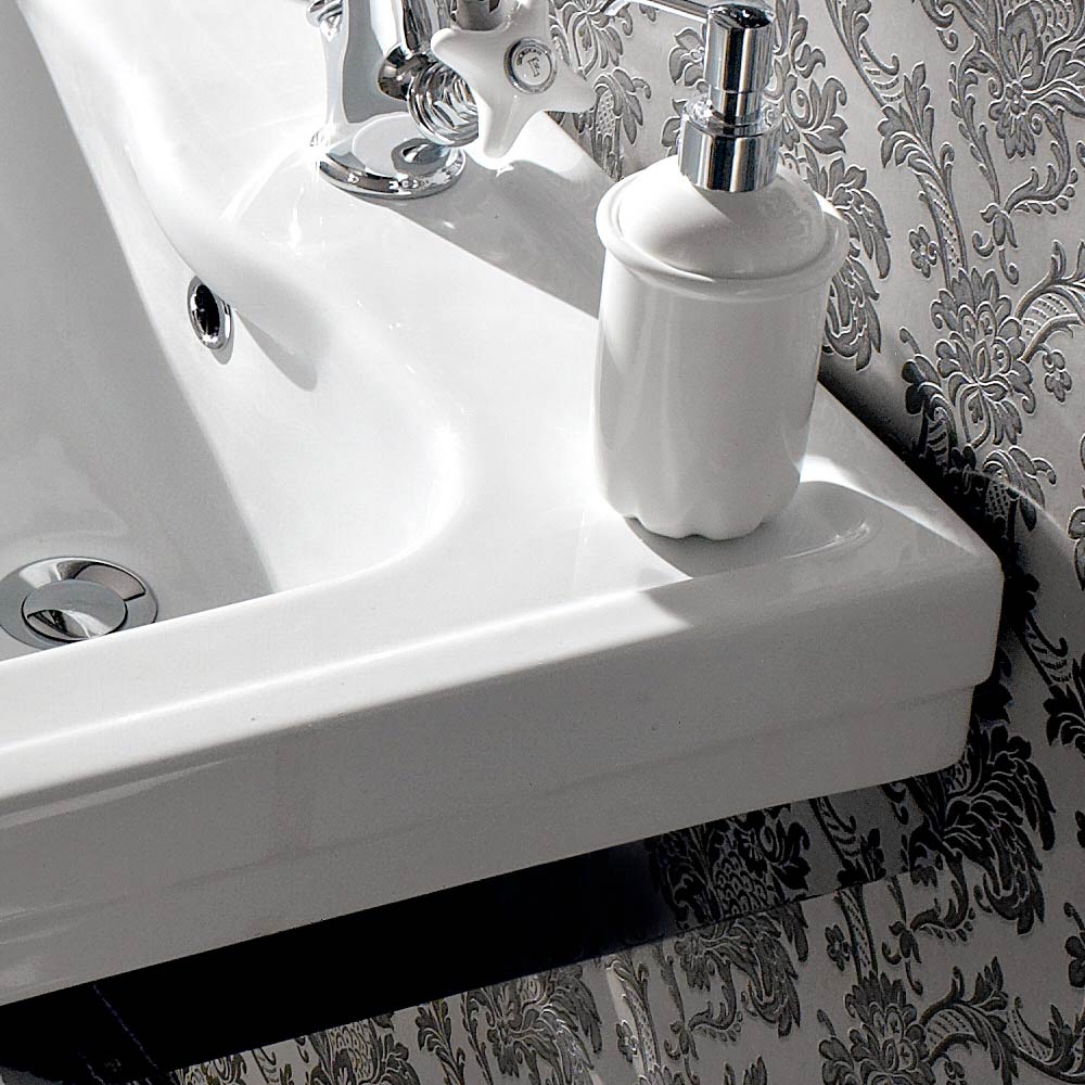Marwa is entirely handmade in Italy in white ceramic. Ceramic is one of the predominant materials when it comes to the bathroom, as it is: