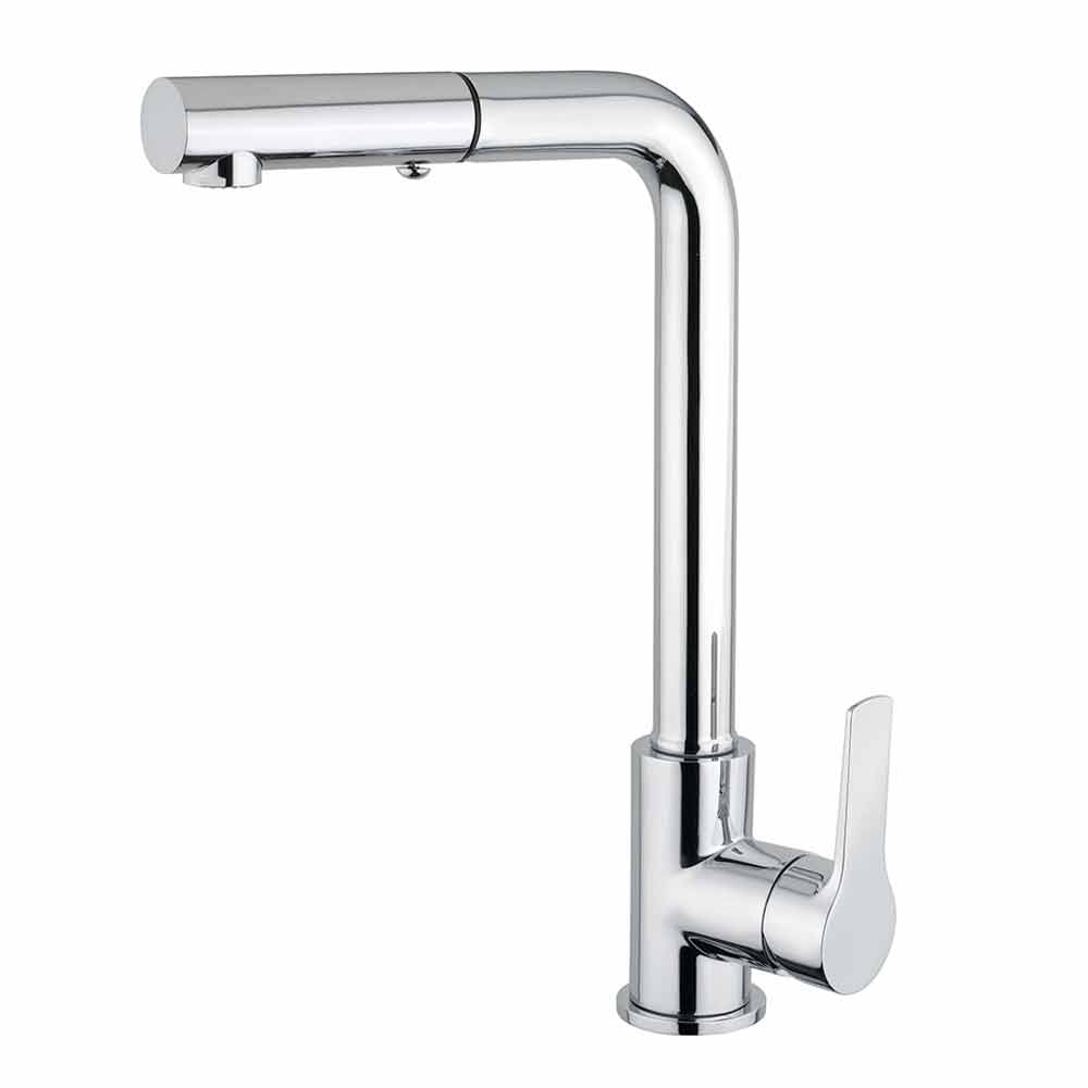 chromed brass . Thanks to the adjustable spout and the 2-jet pull-out hand shower,