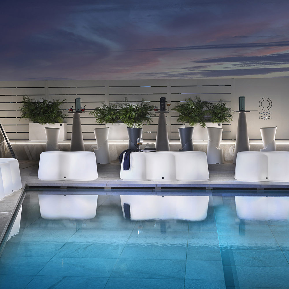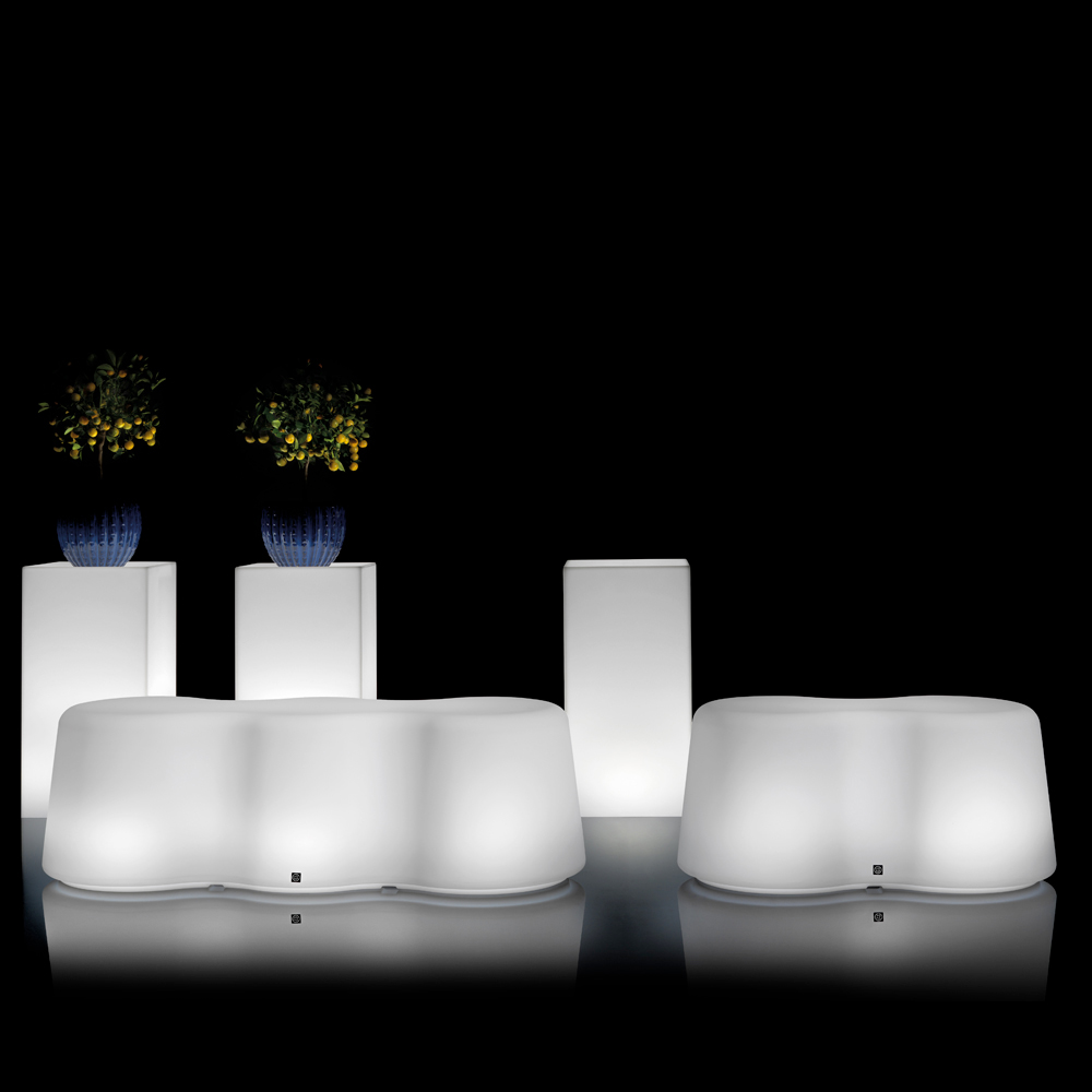 unmistakable and cutting-edge design that underlines its shapes is capable of creating a strong scenic impact, useful when you want to light up outdoor environments that require a furnishing solution with a strong personality.