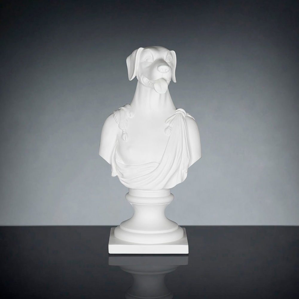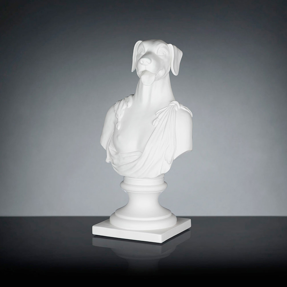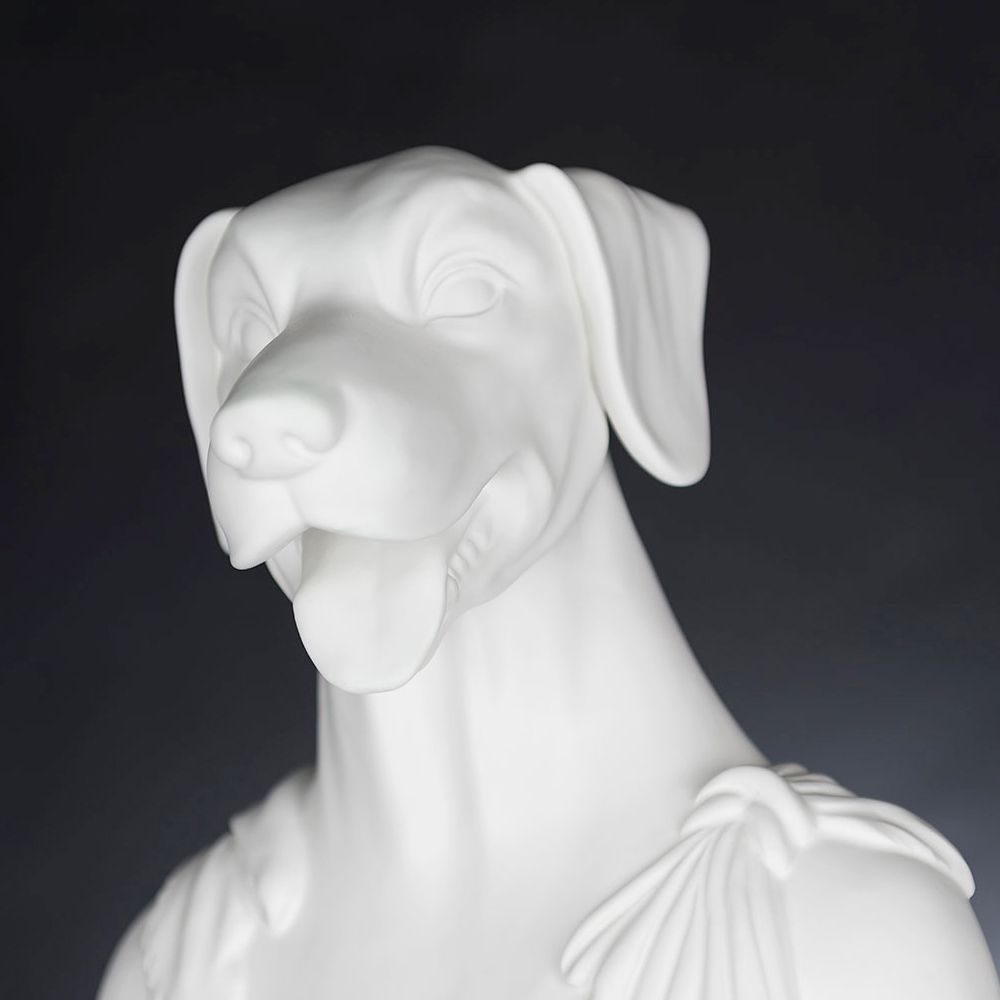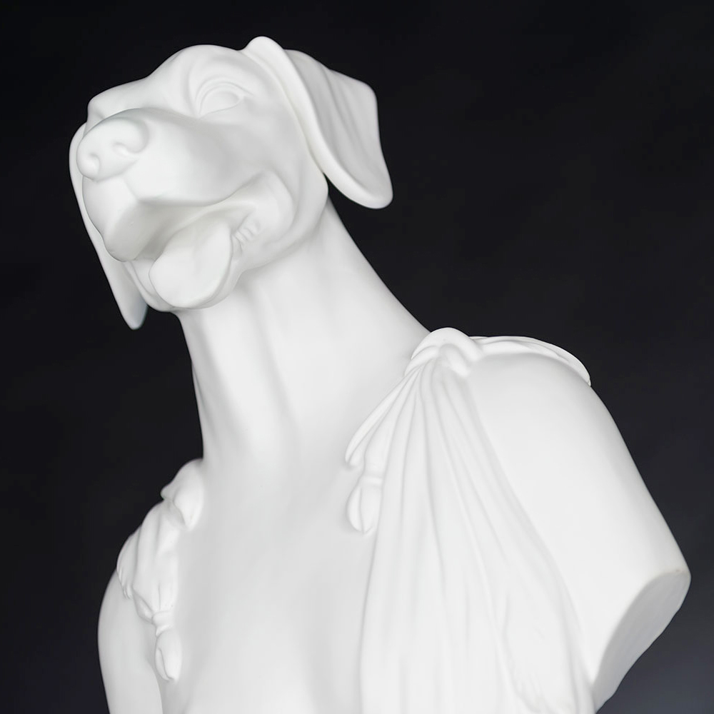Decorative ceramic sculpture handcrafted by Italian artisans depicting Argos, Ulysses' dog.