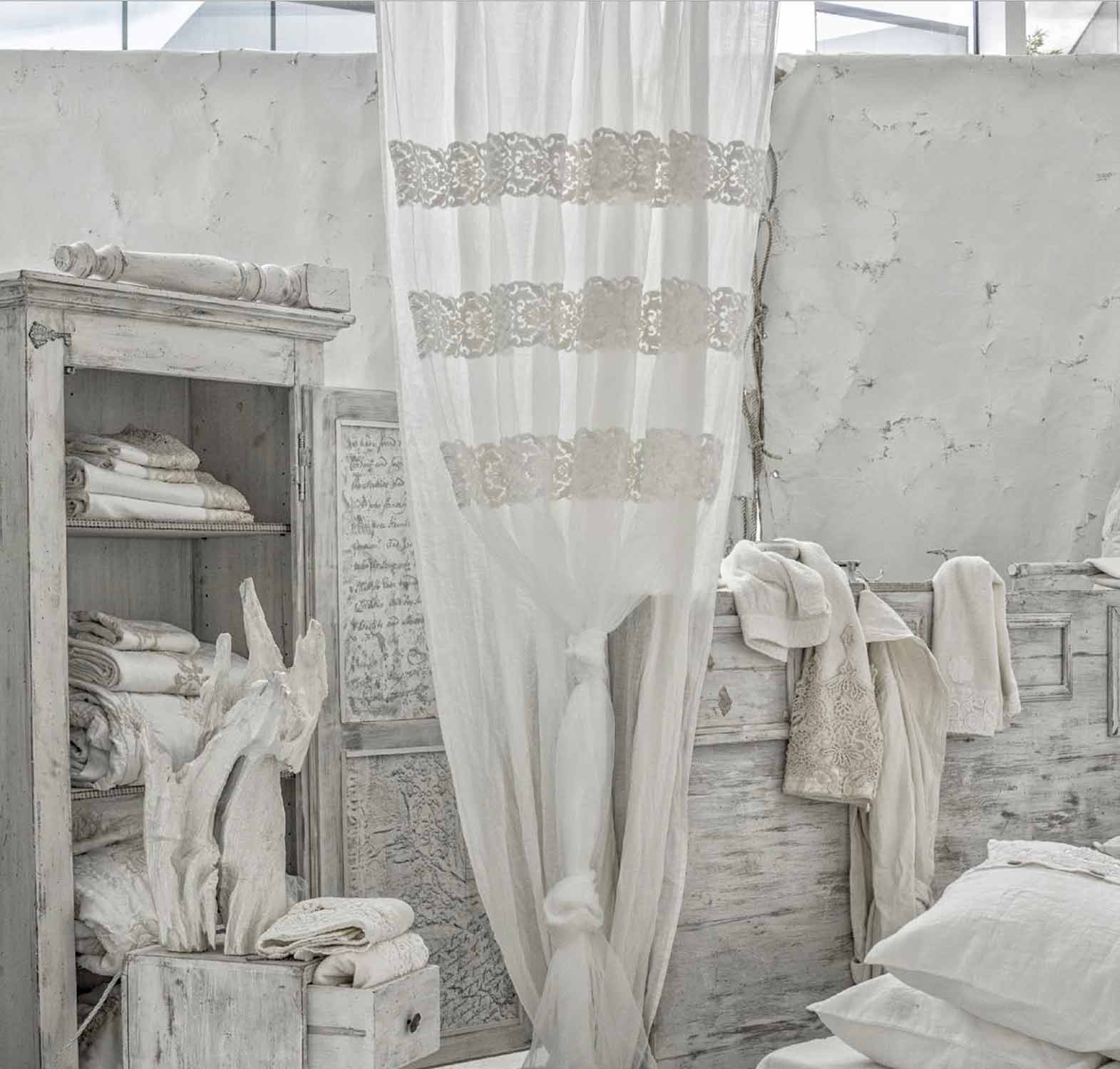 Curtain in linen and organza and embroidery, design of luxury craftsmanship made in Italy.