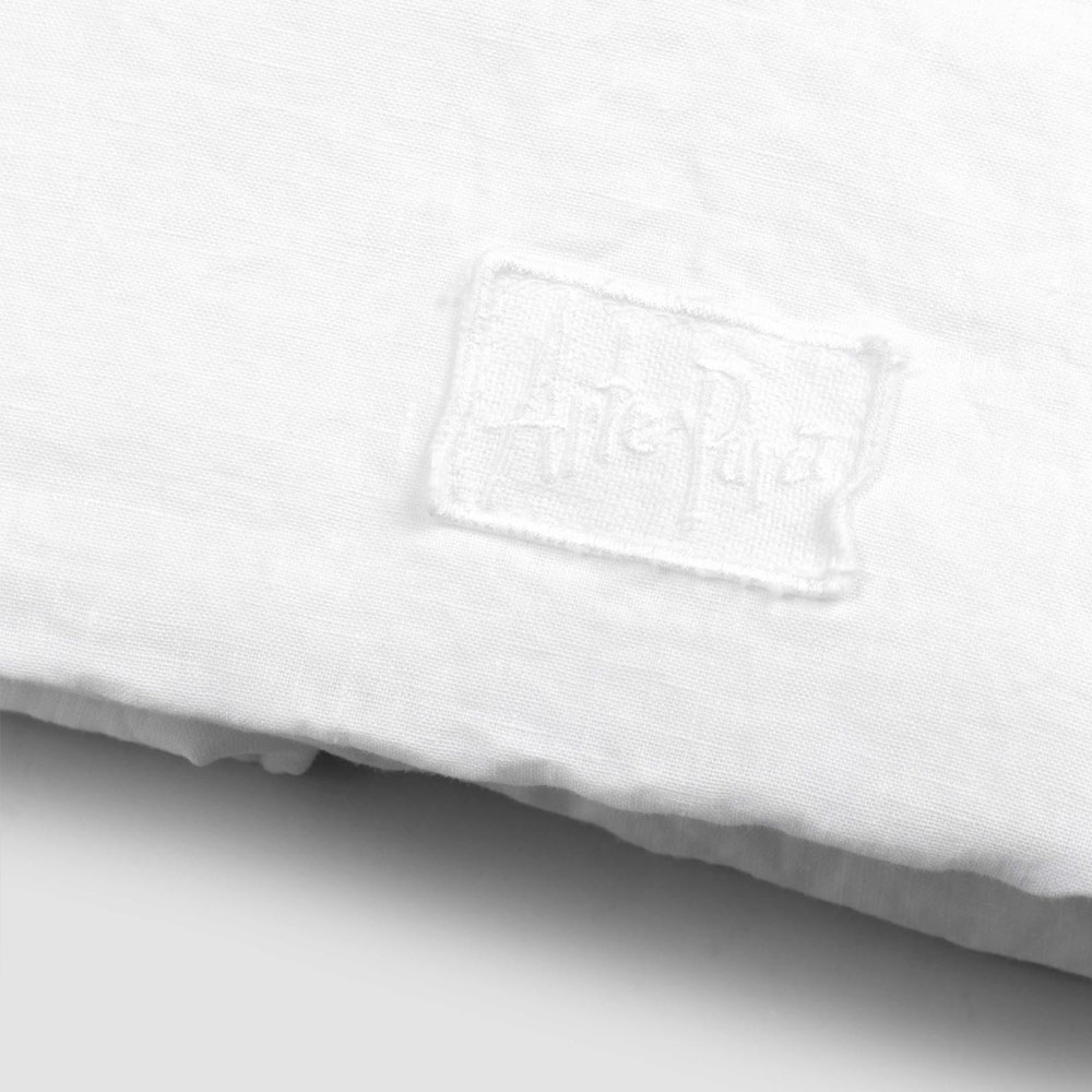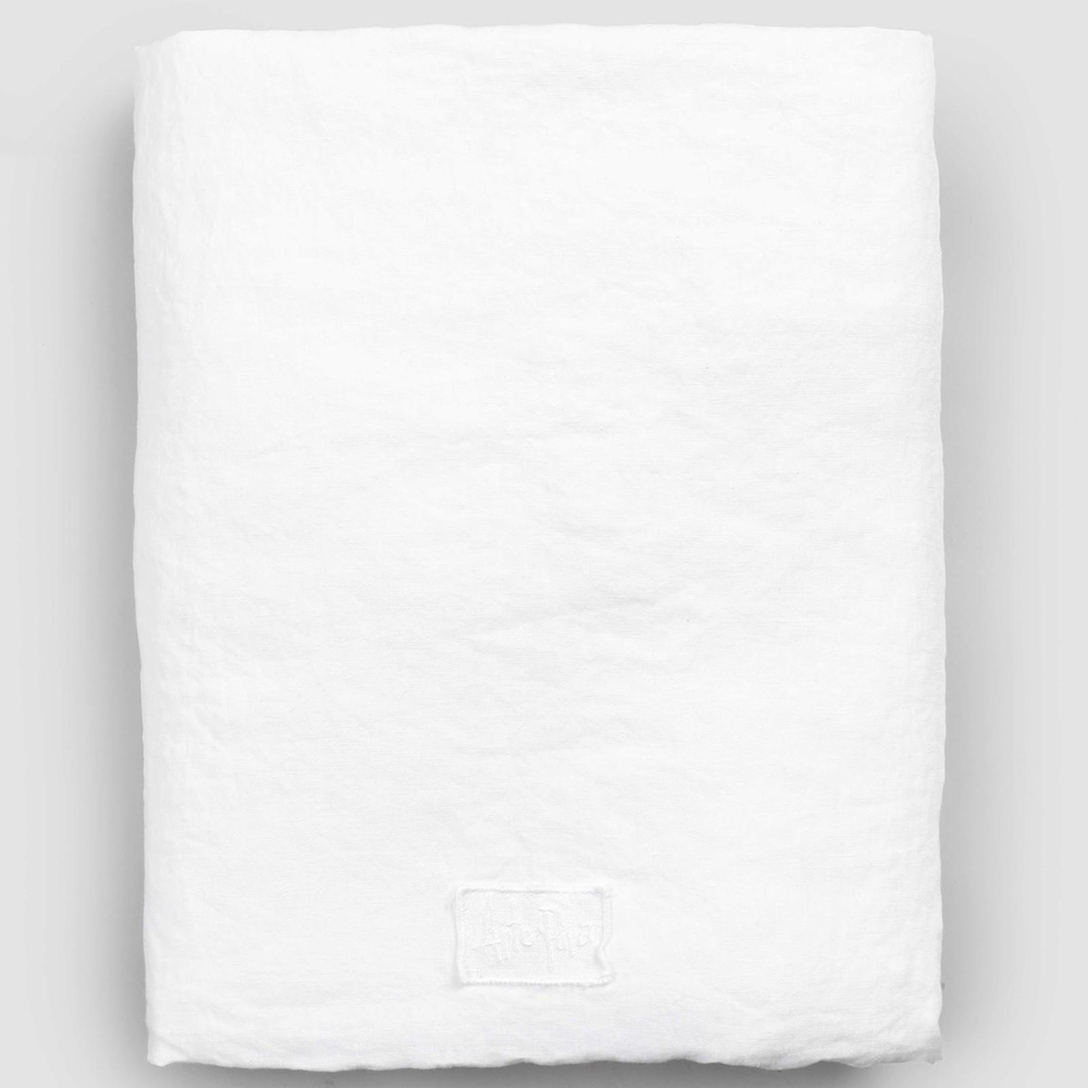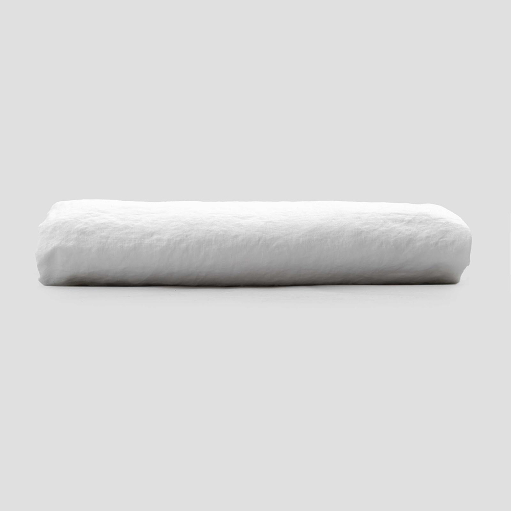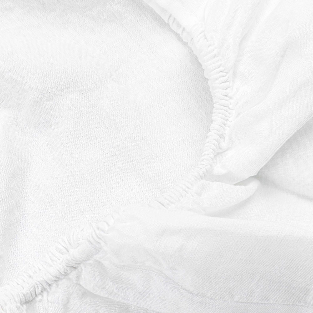 Fitted sheet for double bed in pure white linen, luxury design craftsmanship made in Italy.