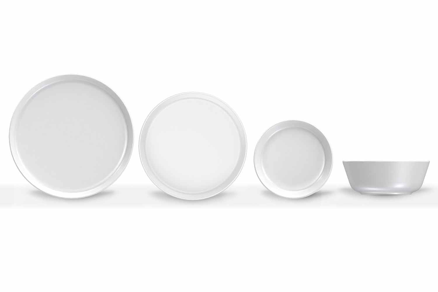 Complete set of modern dining plates in Scandinavian-inspired design porcelain, 24 pieces.
