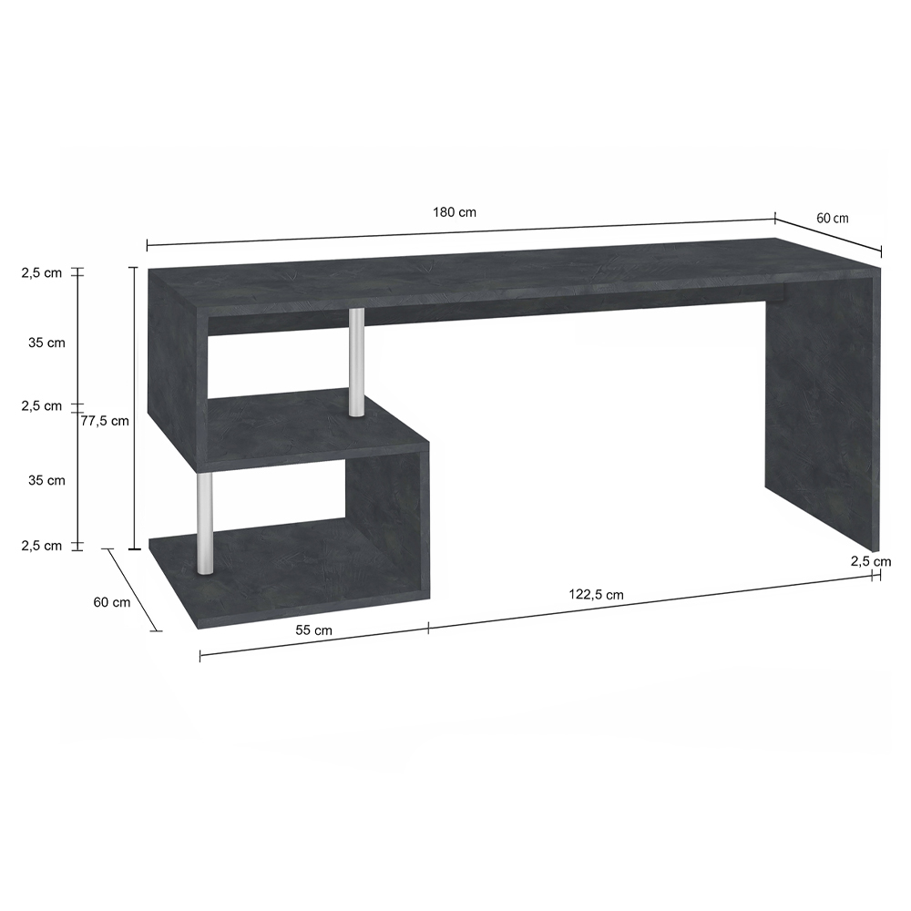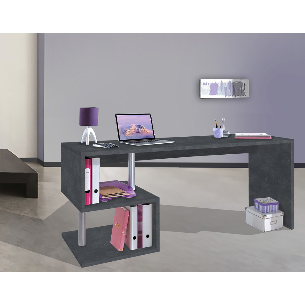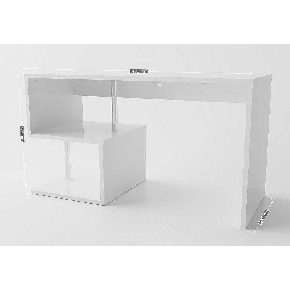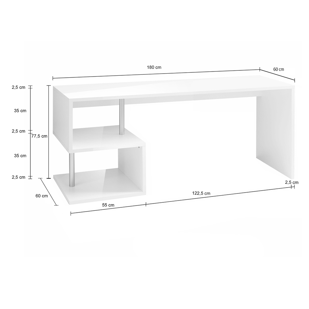 Glossy white or slate wooden desk with modern design shelf in 3 sizes made in Italy.
