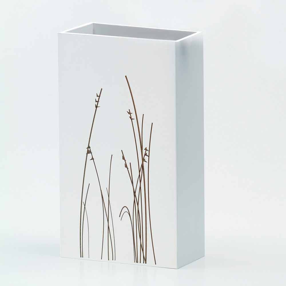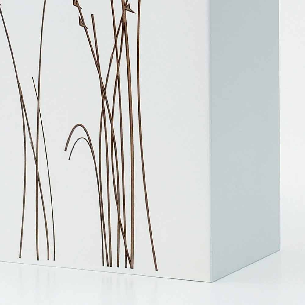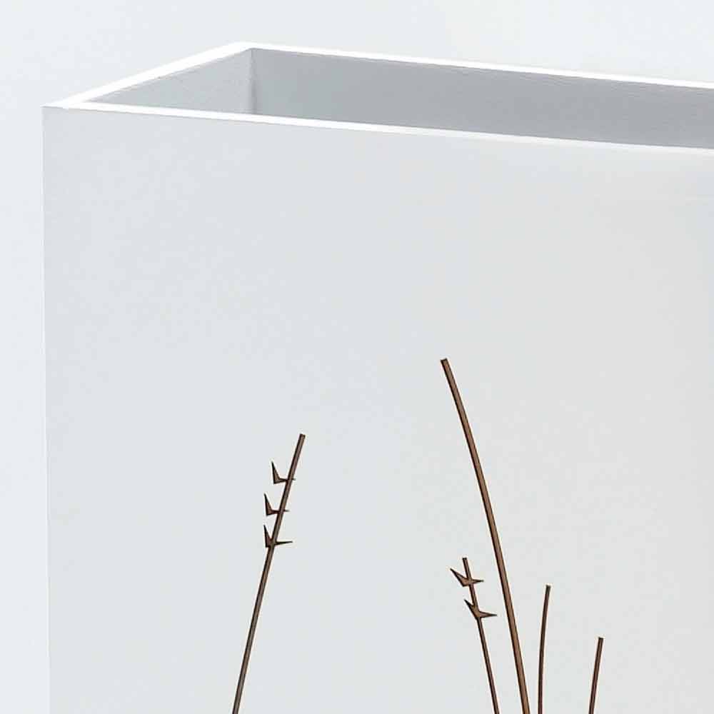 Modern rectangular umbrella stand in white wood with laser-marked motifs, floor design made in Italy.