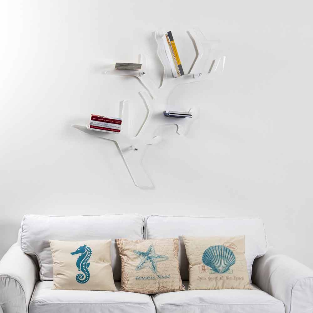 Maritime sensations for the Carol wall bookcase, made with precise laser cuts to give it the shape of a true jewel of the sea. The front part in transparent plexiglass, which reflects the back part, available in solid white, gives a touch of elegance to the home environment. Both the transparent base and the shelf are made of 100% virgin polymer PMMA acrylic crystal. The brightness and brilliance remain constant and unaltered over time. The virgin polymer PMMA plexiglass used by is non-toxic, hypoallergenic, odorless and antibacterial. 100% recyclable. UNI EN 71-3:200 compliant. Conceived, designed and made in Italy, with Italian materials.