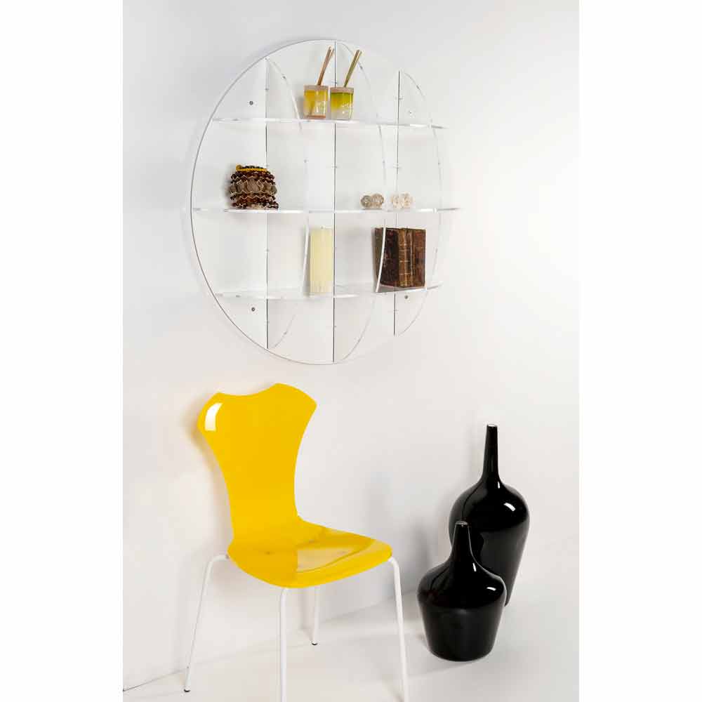 Gio is a modern bookcase made of 100% PMMA from vergin polymers plexiglass. Its design is characterized by round and geometric shapes.