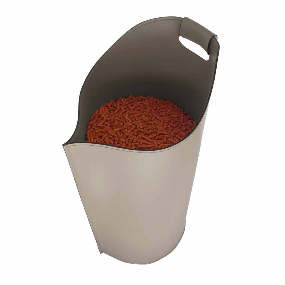 This fantastic pellet holder with an original shape is made of leather, available in different chromatic variations, with plywood bottom able to increase its resistance.